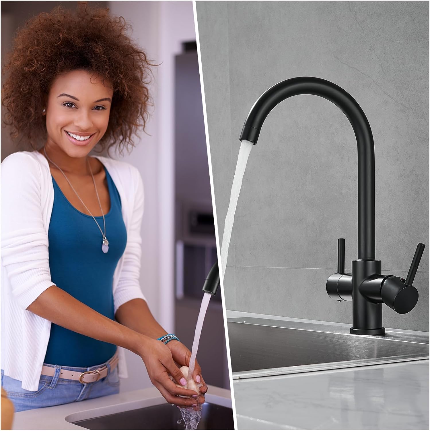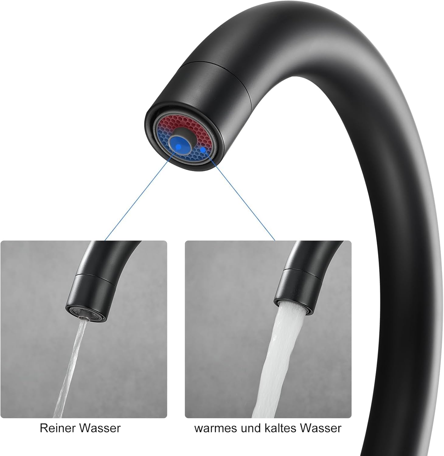 - 【Die perfekte Kombination von Warm- und Kaltwasser- und Trinkwasserarmaturen】Dieser Wasserhahn liefert heisses, kaltes und trinkbares Wasser mit nur einem Installationsloch. Das ist das Nonplusultra an Bequemlichkeit und Platzersparnis, perfekt für