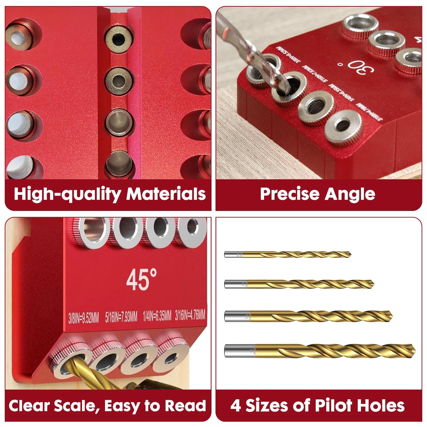 - 🎈【Präzise 3 Winkel】Durch das Mehrwinkeldesign können Sie je nach Bedarf zwischen 30, 45 und 90 Grad bohren. Der präzise Winkel ermöglicht Ihnen, die Bohrarbeiten schnell und genau abzuschliessen, was Zeit und Mühe spart und die