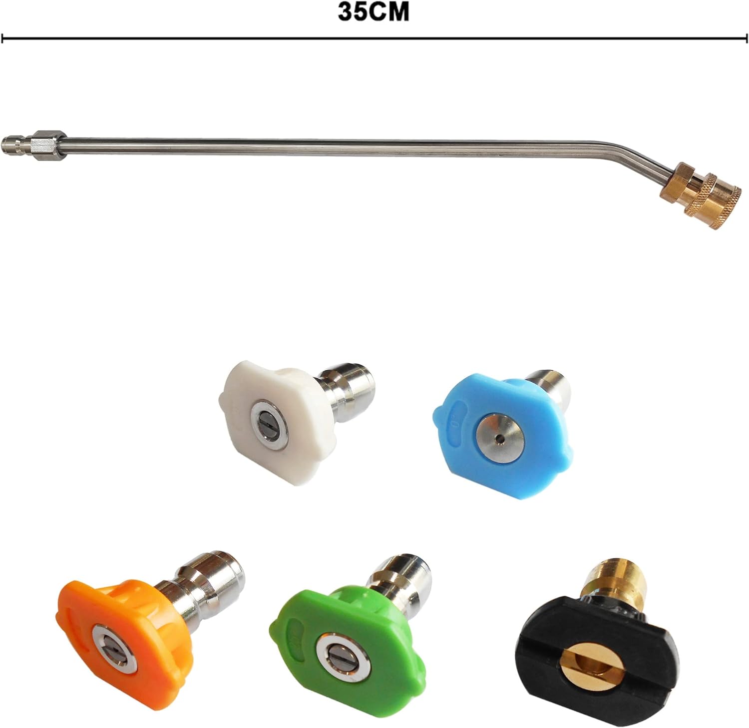 - Leistungsstarke Reinigung: 35 cm Verlängerung für Hochdruckreiniger Metallstrahl Schnellverbinder 1/4 Zoll mit 5 Auto-Reinigungsdüsen