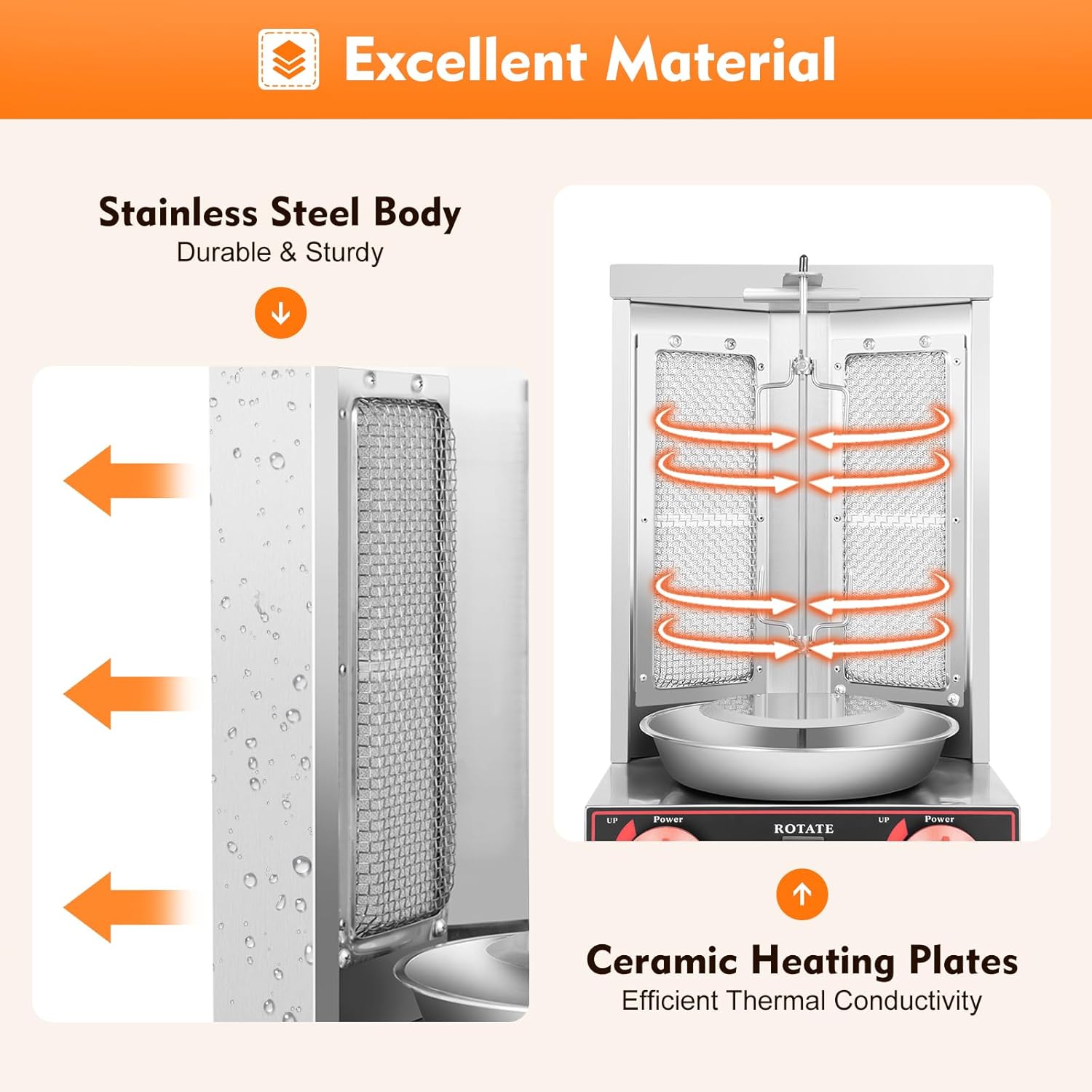 - 🍗【360°Rotation】: Der Zwischenschacht kann sich mit einer konstanten Geschwindigkeit von 360° drehen, um sicherzustellen, dass das Essen gleichmässig erhitzt wird, das Grillfleisch gründlich gegart wird und köstliche Gerichte zubereitet