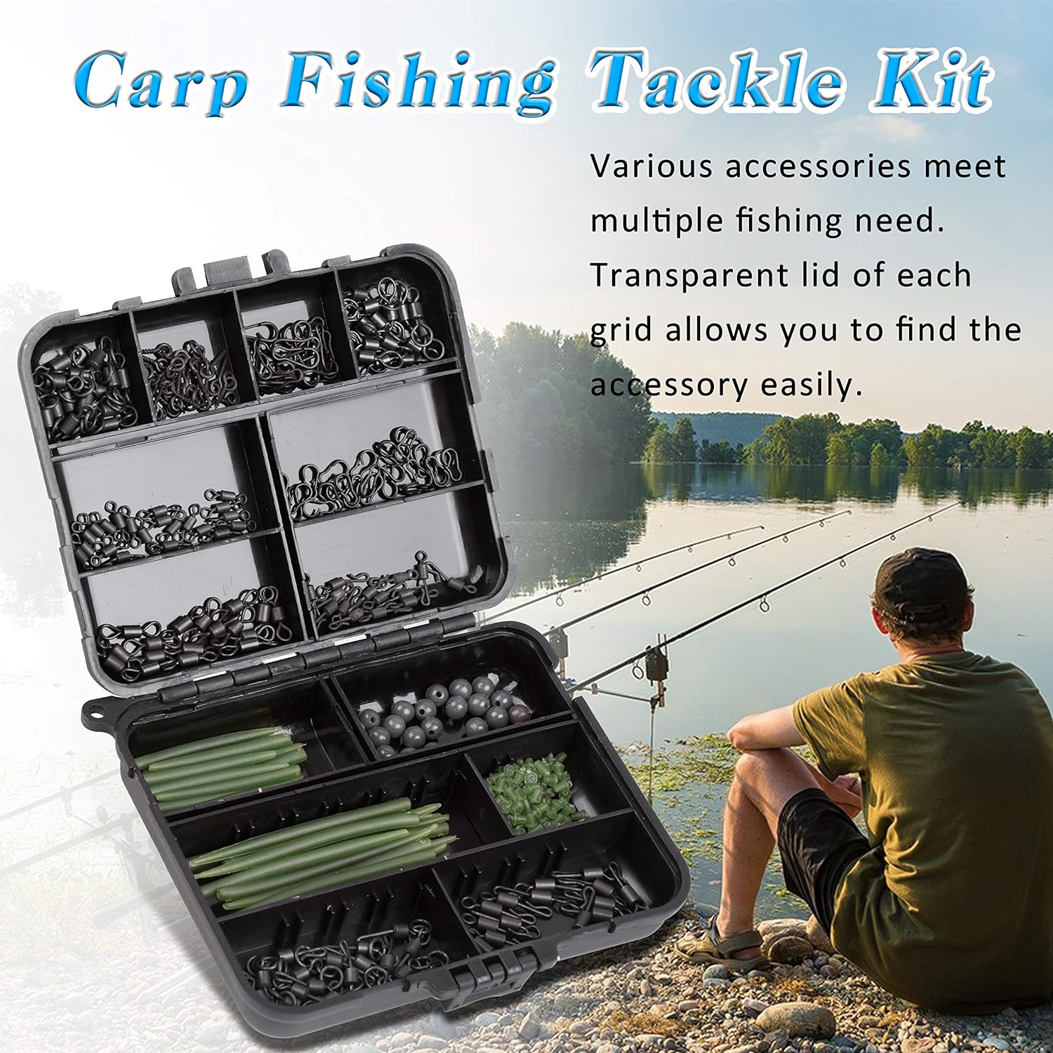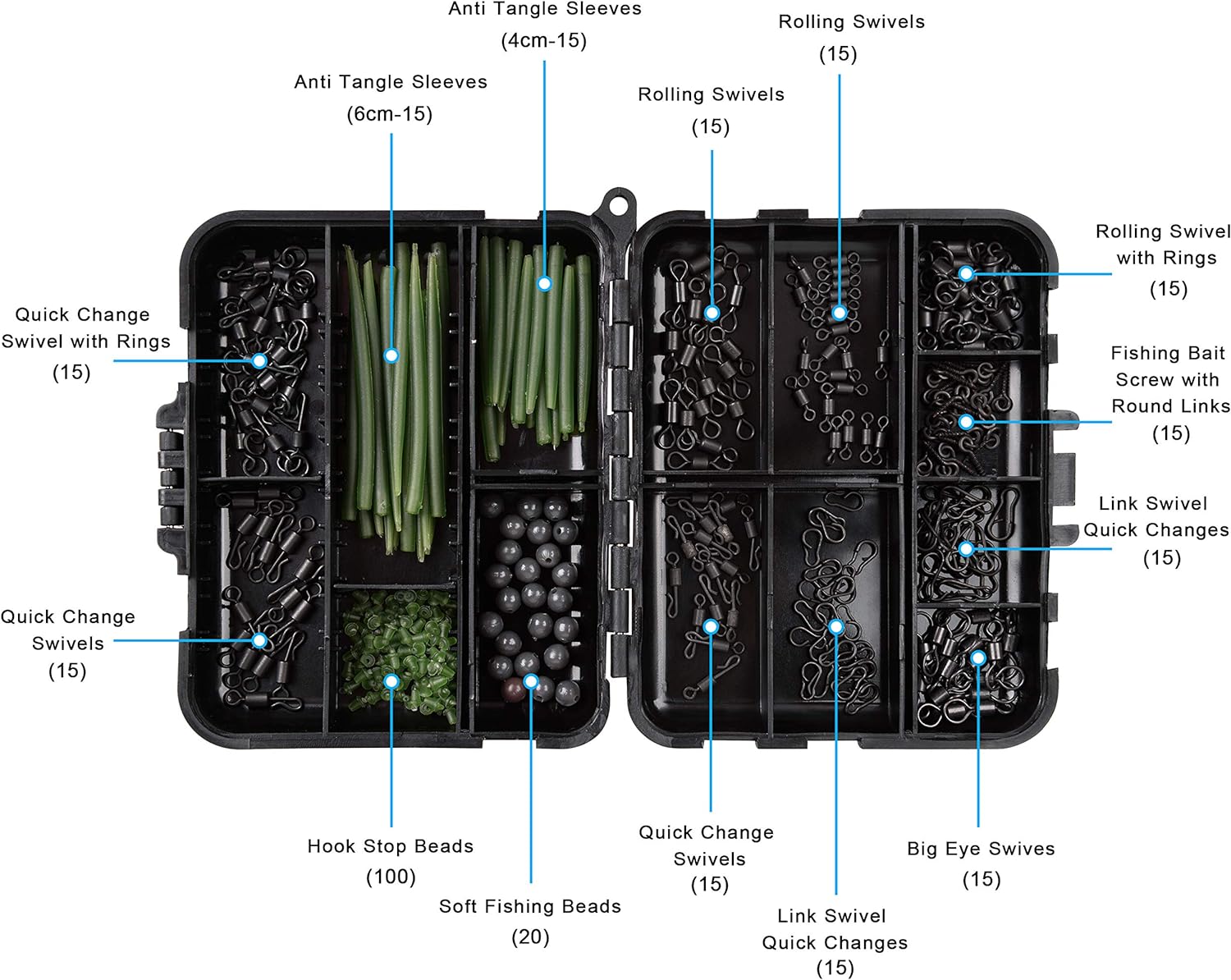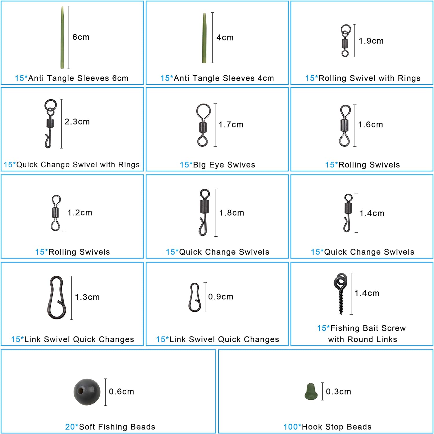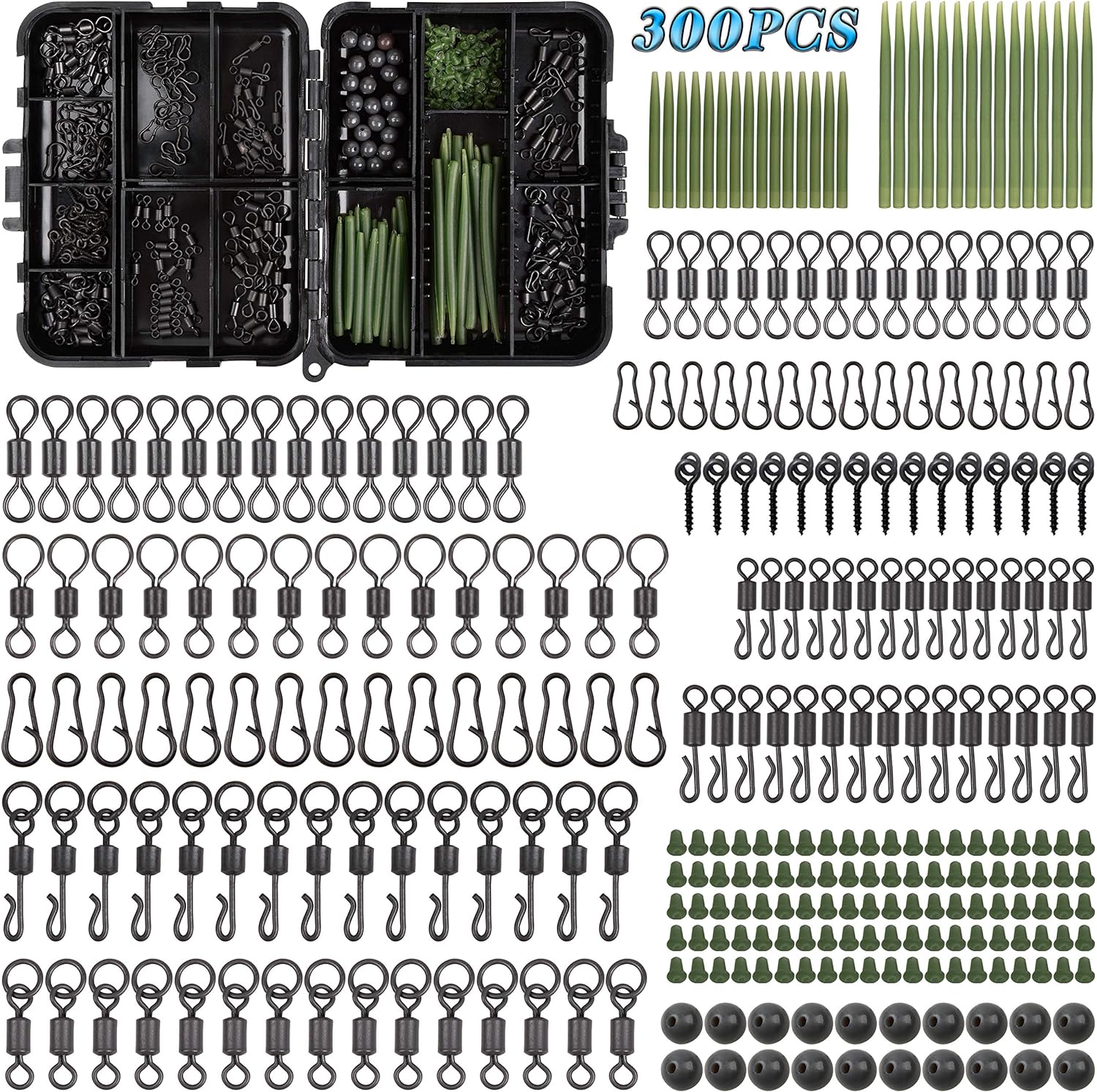 - ◤ 300tlg Karpfenangeln-Drehset mit 14-Grössen-Karpfenwirbeln, Hakenstopps, Perlen, Köderschrauben, Anti-Tangel-Hülsen.Ideal für das grobe Meeresangeln auf Karpfen.