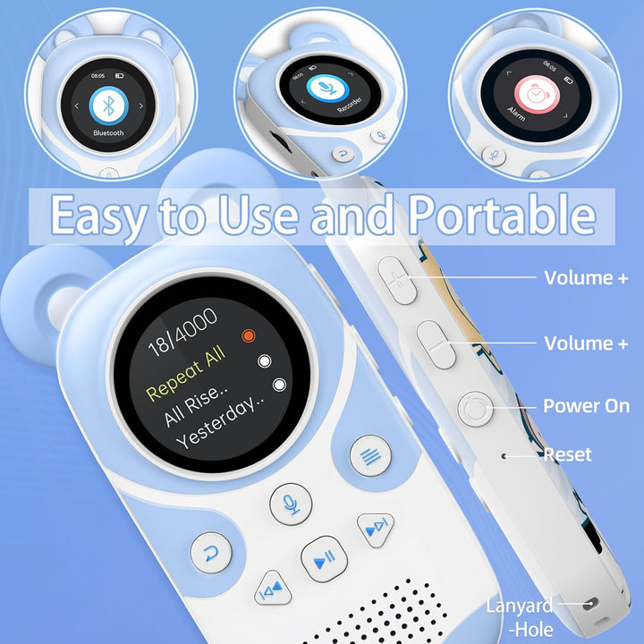 - 🎵【Ein vielseitiger Musikplayer für Kinder】Neben der Wiedergabe von Musik und Hörbüchern unterstützt er auch Funktionen wie FM-Radio, Aufnahme und Wecker. Ausserdem verfügt er über Funktionen, mit denen Sie die Helligkeit des Bildschirms