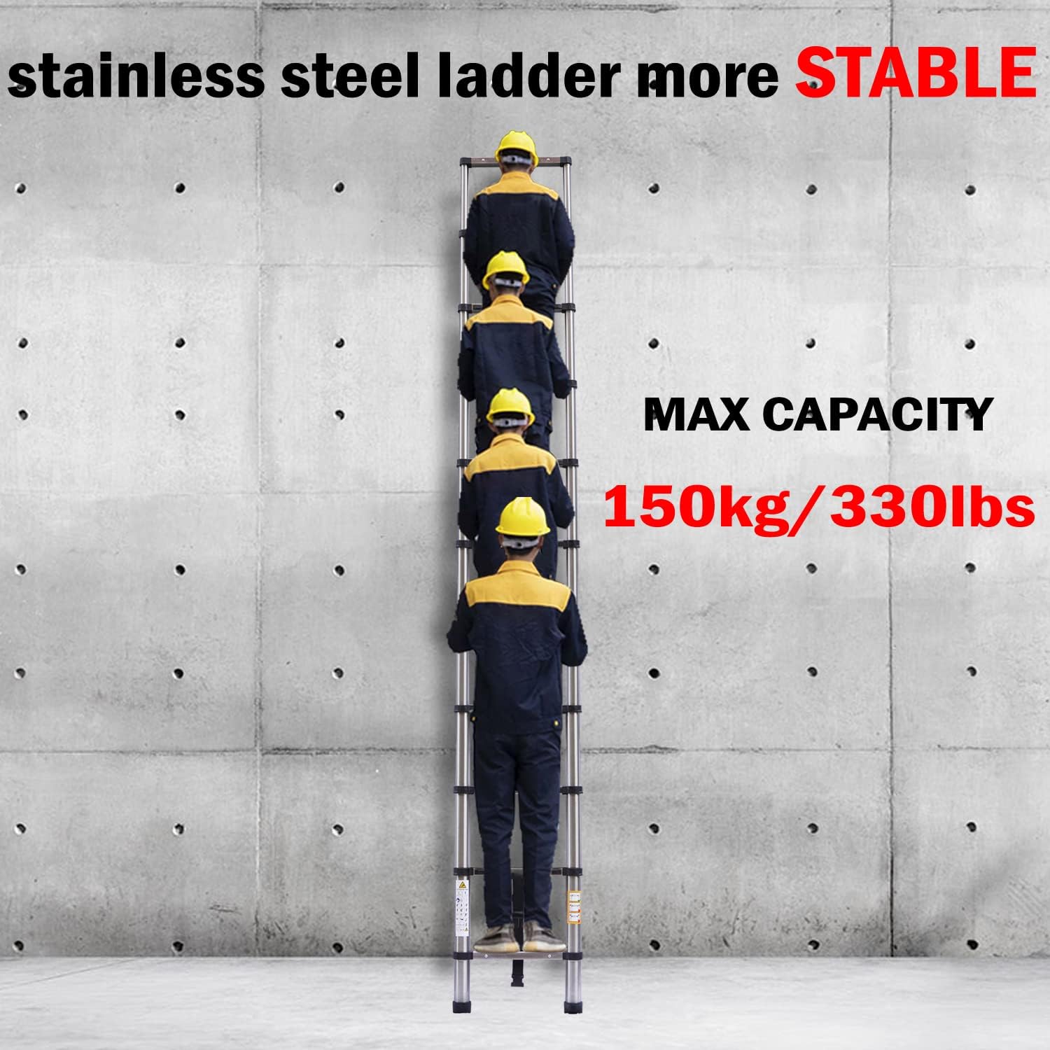- 🔴Wie wählt man eine Edelstahl-Teleskopleiter oder eine Aluminium-Teleskopleiter? Wenn Sie Tragbarkeit wünschen, sind teleskopierbare Aluminiumleitern besser für Sie. Wenn Sie mehr Stabilität wünschen, ist die Edelstahl-Teleskopleiter besser für