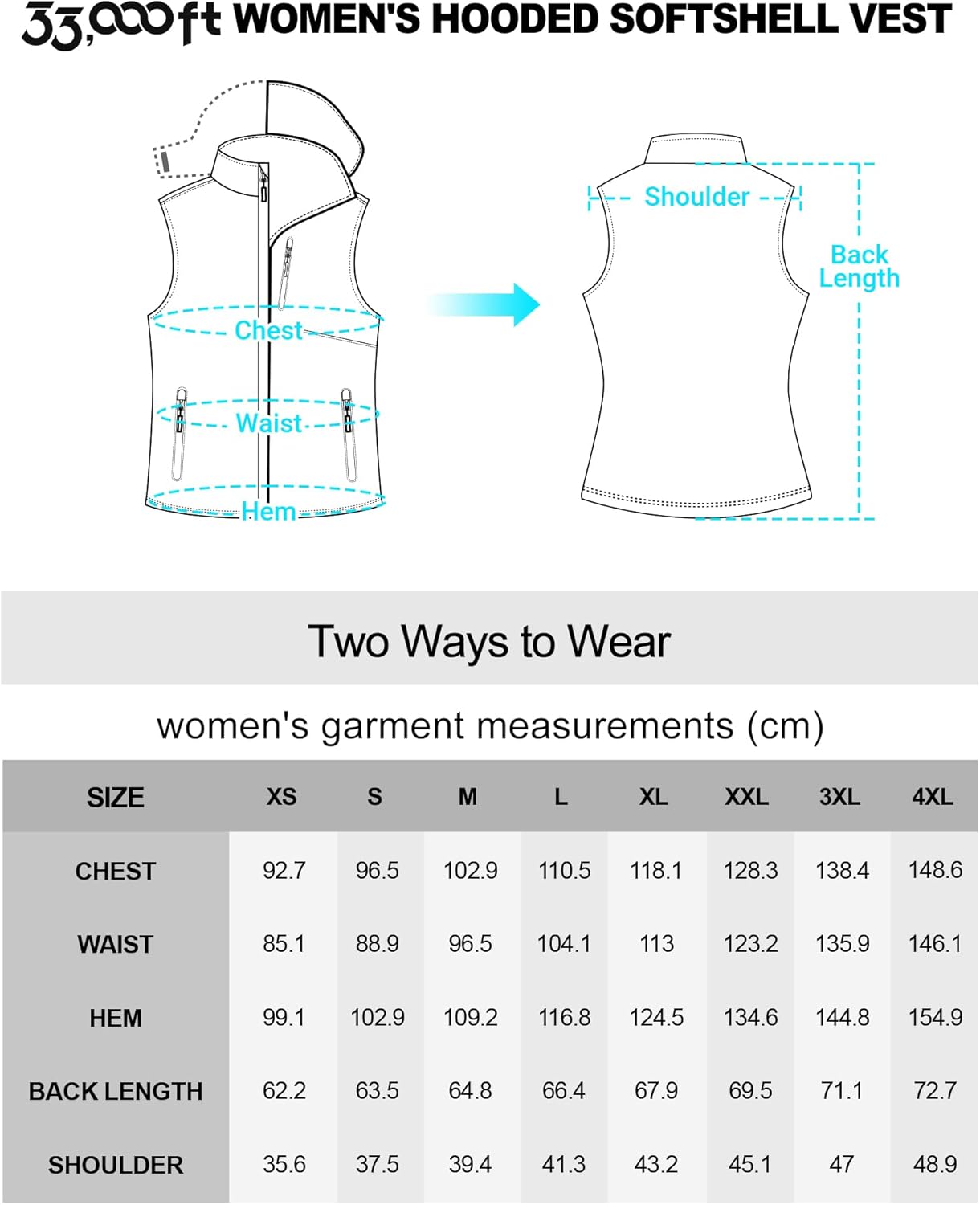 - 【SOFTSHELL MATERIAL】---Diese 33,000ft Damen Softshell Weste mit Kapuze verfügt über 3-Lagen-Material mit äusserer Softshell, TPU-Membran-Mittelschicht und Fleece-Innenfutter für starken Schutz vor den Elementen. Das Softshell-Material ist