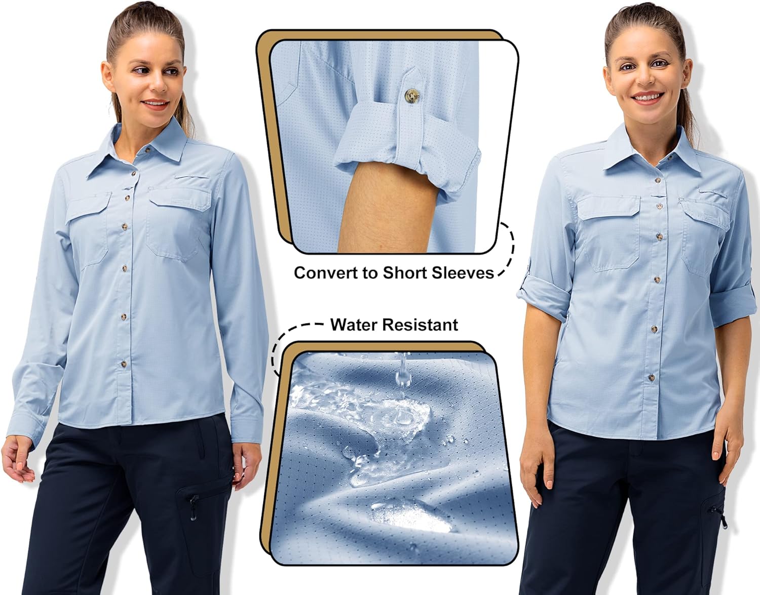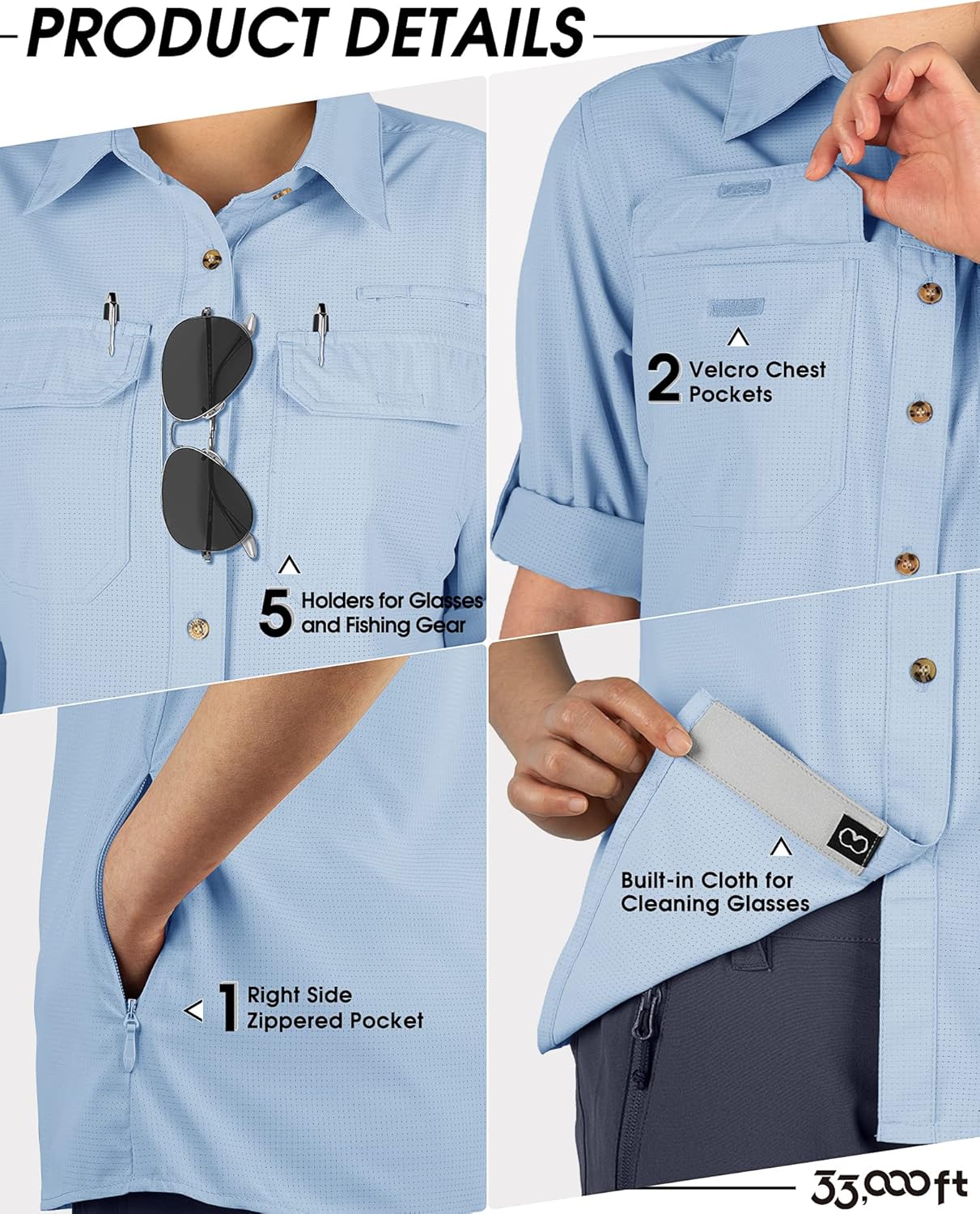 - KONVERTIEREN SIE SIE IN KURZE ÄRMEL-- 33,000ft Frauen Langarm Cabrio-Angelhemden mit Roll-up-Ärmel-Design - Die Tasten am Oberarm zu fixieren, die Ärmel hochgekrempelt, um eine kurze Hülse zu konvertieren, so können Sie eine bequeme Wahl nach der