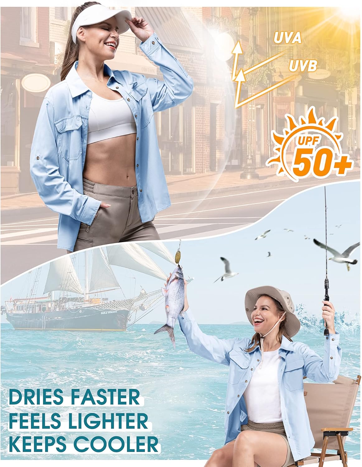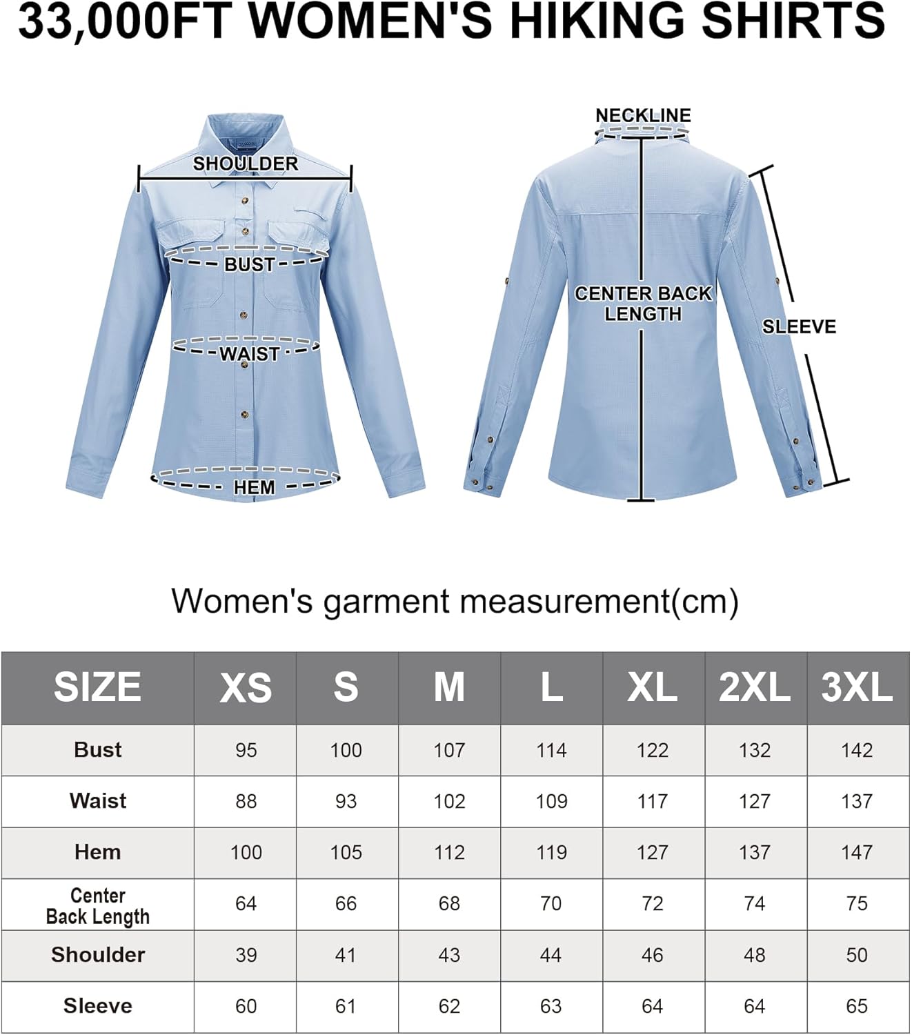 - UPF 50+ UV-SCHUTZ: Das 33,000ft UV Schutz Hemd für Frauen ist mit einem UPF 50+ Sunblocker ausgestattet, der schädliche UVA- und UVB-Strahlen abblockt, um Sonnenbrand und Hautschäden bei langen Aufenthalten in der Sonne zu vermeiden. Dieses
