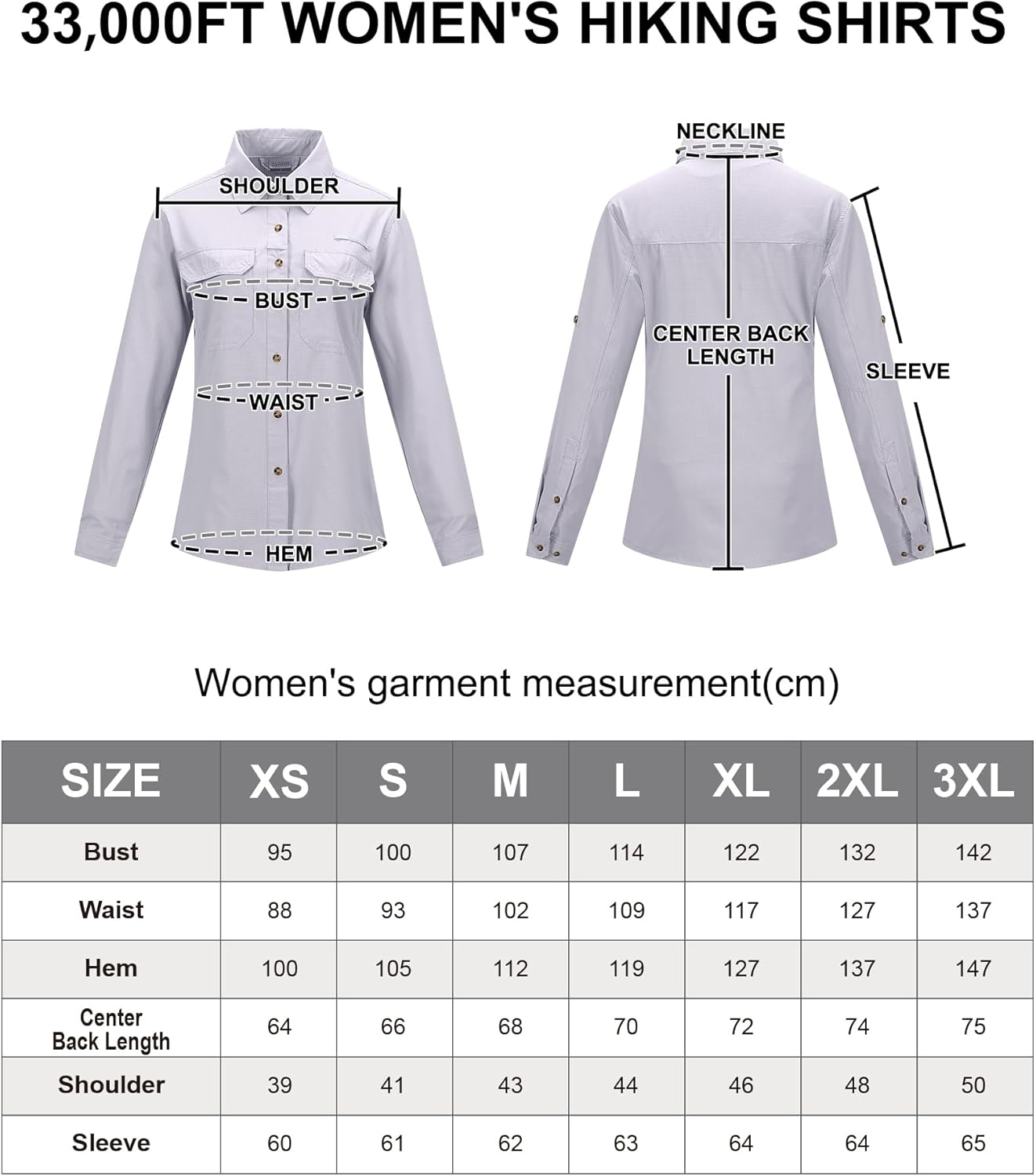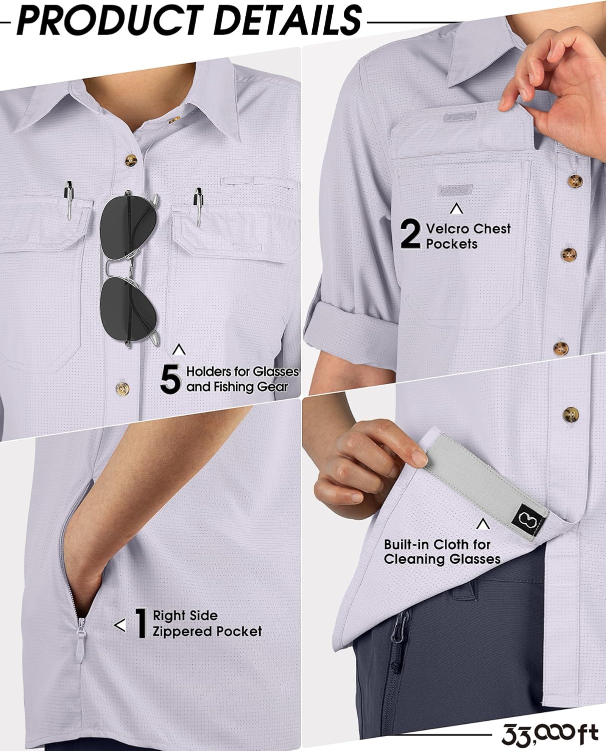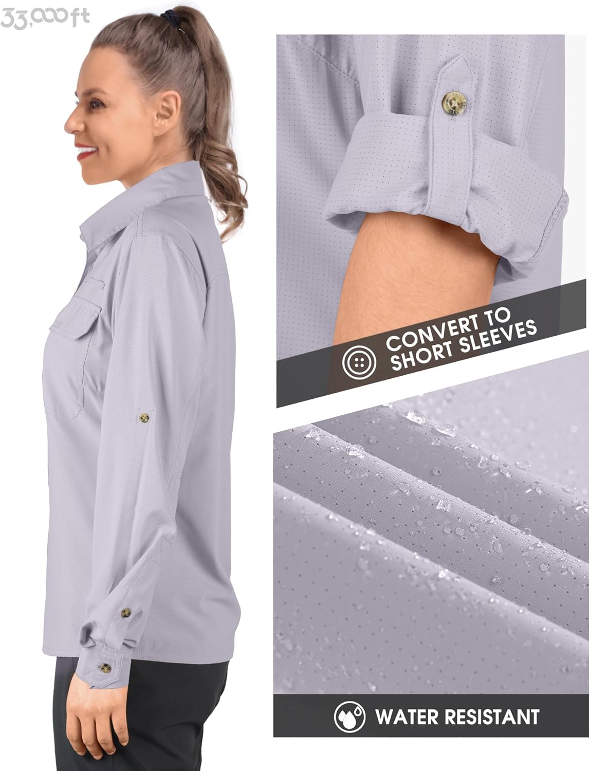 - KONVERTIEREN SIE SIE IN KURZE ÄRMEL-- 33,000ft Frauen Langarm Cabrio-Angelhemden mit Roll-up-Ärmel-Design - Die Tasten am Oberarm zu fixieren, die Ärmel hochgekrempelt, um eine kurze Hülse zu konvertieren, so können Sie eine bequeme Wahl nach der