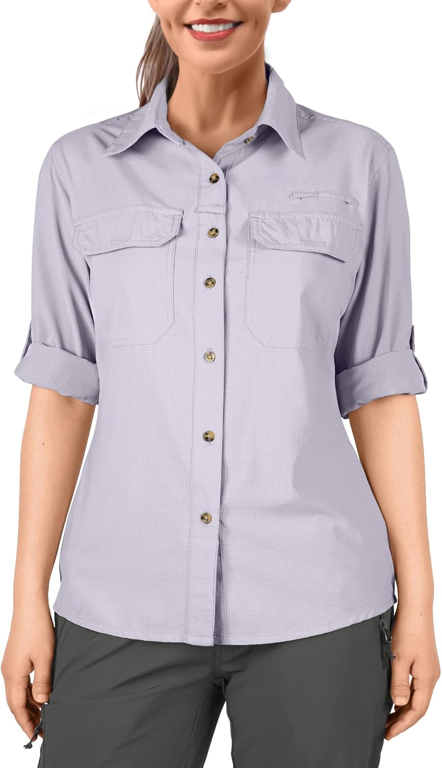 - ANLÄSSE -- Dieses Damen golf outdoor hemd ist knitterfrei und hat eine gute Elastizität, so dass Sie sich frei bewegen können. Es ist die ultimative Wahl für alle Outdoor-Aktivitäten wie Trekking, Angeln, Wandern, Camping, Safari, Reisen,