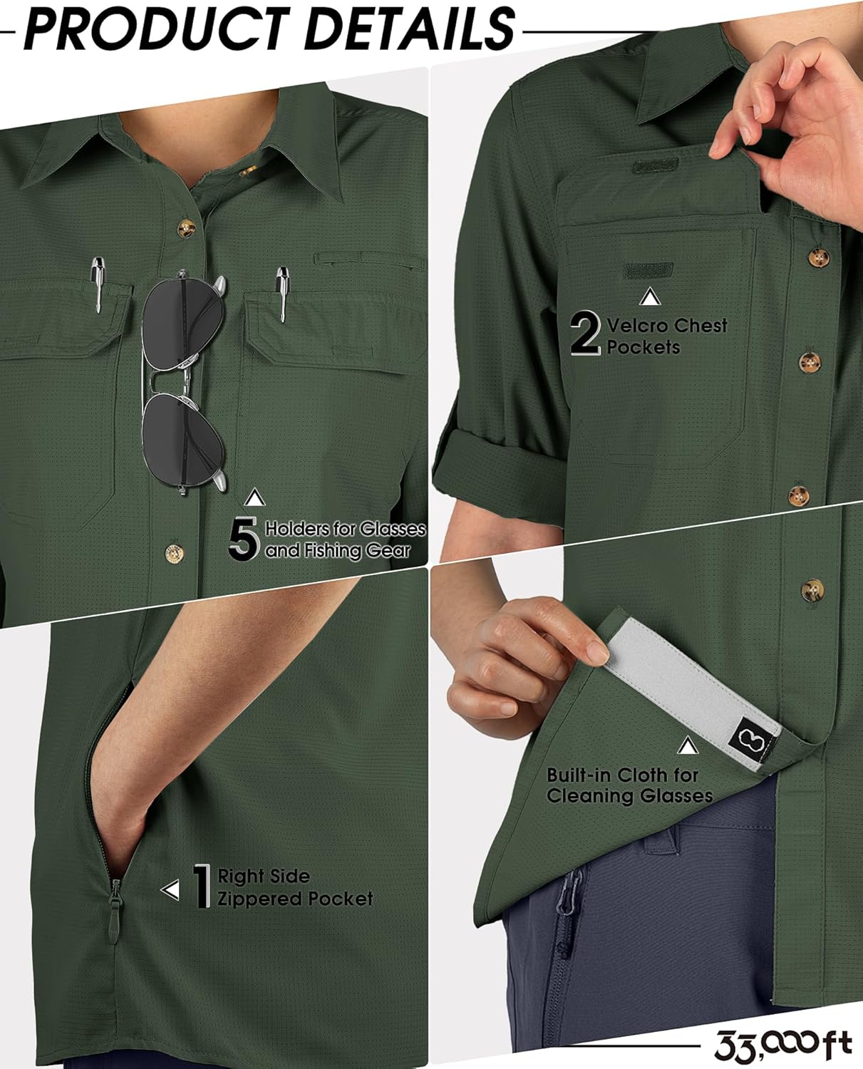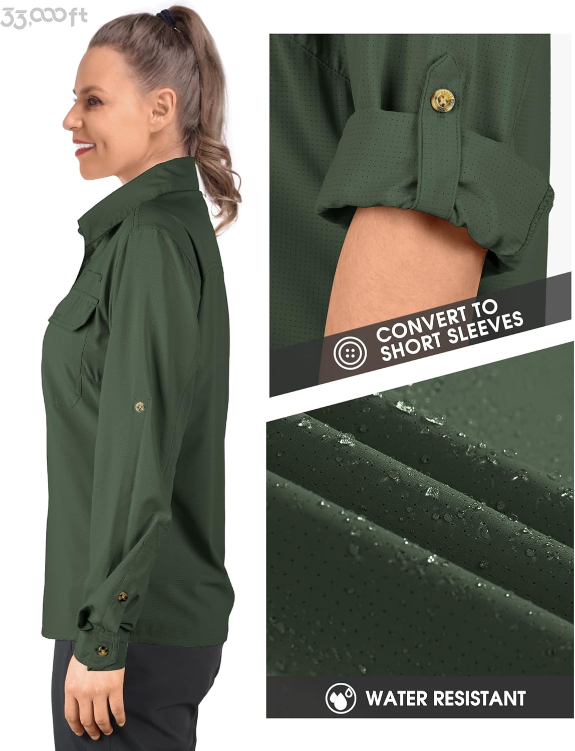 - KONVERTIEREN SIE SIE IN KURZE ÄRMEL-- 33,000ft Frauen Langarm Cabrio-Angelhemden mit Roll-up-Ärmel-Design - Die Tasten am Oberarm zu fixieren, die Ärmel hochgekrempelt, um eine kurze Hülse zu konvertieren, so können Sie eine bequeme Wahl nach der