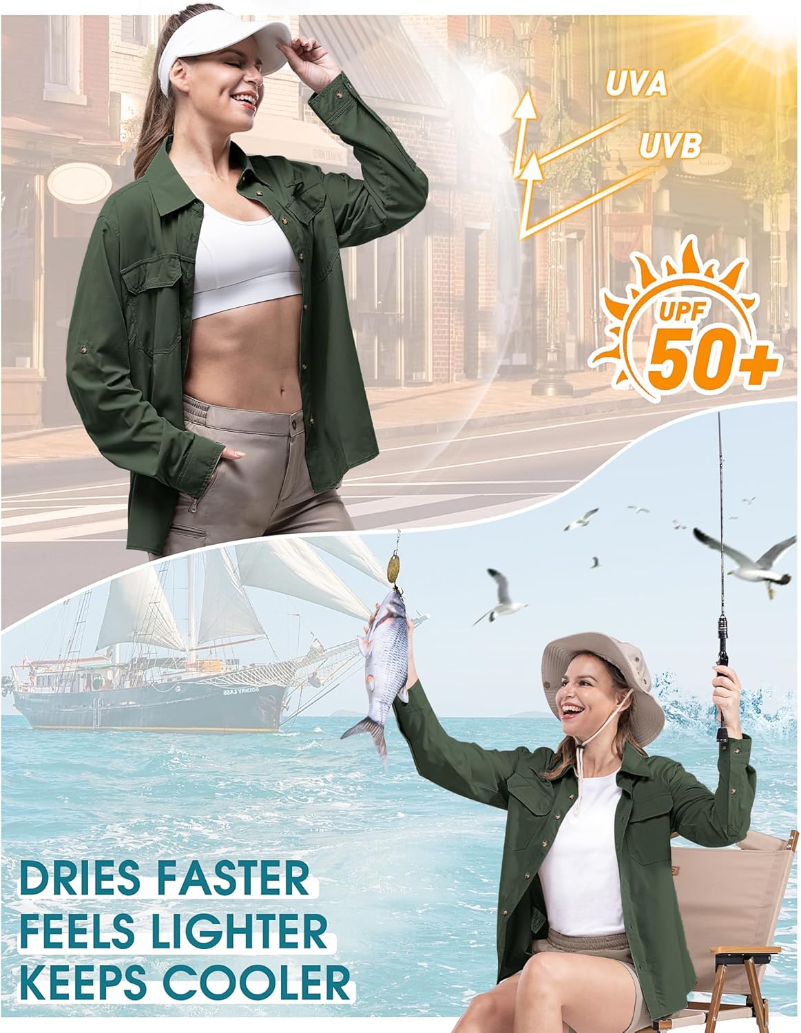 - UPF 50+ UV-SCHUTZ: Das 33,000ft UV Schutz Hemd für Frauen ist mit einem UPF 50+ Sunblocker ausgestattet, der schädliche UVA- und UVB-Strahlen abblockt, um Sonnenbrand und Hautschäden bei langen Aufenthalten in der Sonne zu vermeiden. Dieses