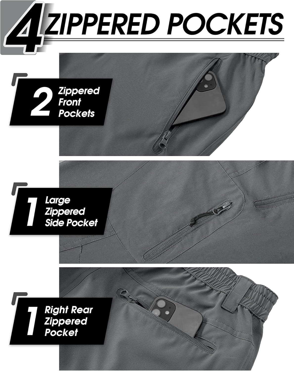 - 5 Reissverschlusstaschen: Herren schnelltrocknende cargohose unter dem Knie mit 4 Reissverschlusstaschen bieten extra glatte und haltbare, tief genug, um Ihre Telefone, Brieftaschen und Schlüssel sicher zu halten Und Reissverschlüsse versprechen extra