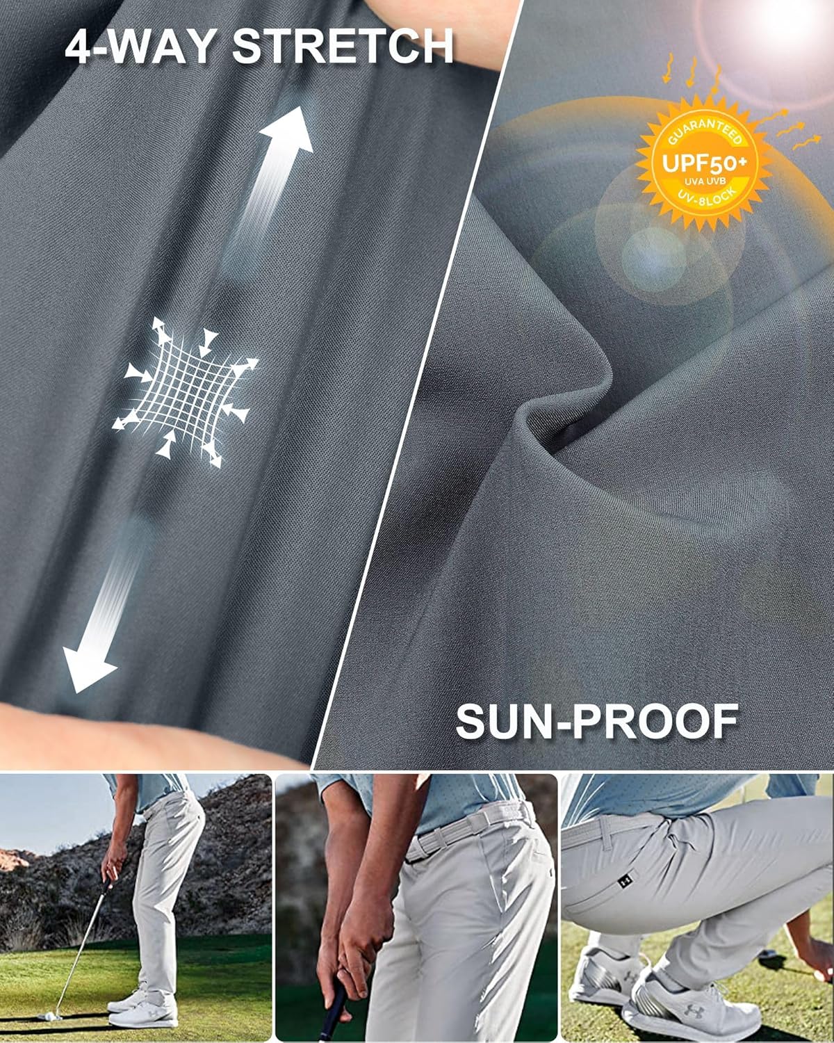 - Schnell trocknend und atmungsaktiv: Die 33.000-Fuss-Stretchhose für Golf ist feuchtigkeitsableitend und atmungsaktiv und leitet Feuchtigkeit vom Körper weg, damit Sie sich trocken fühlen. Das Material besteht aus 4-Wege-Stretchmaterial für maximalen
