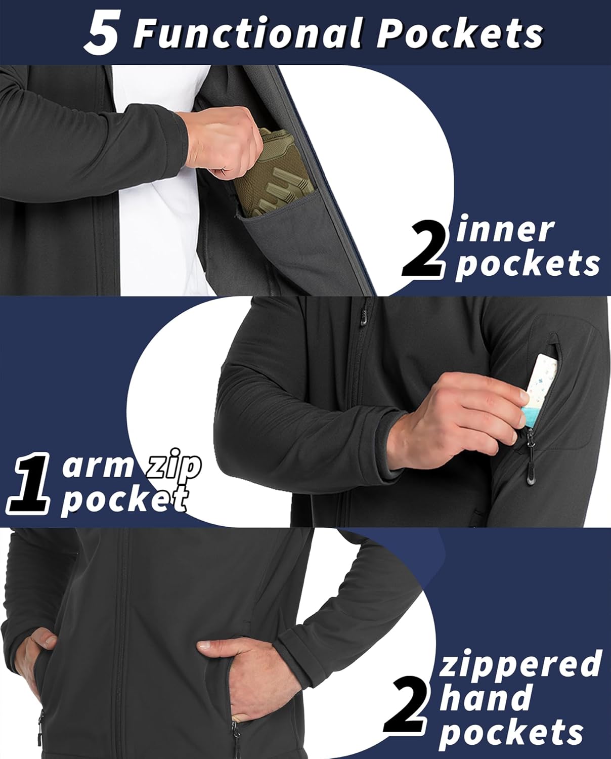 - ÜBERGANGSJACKE HERREN WASSERDICHT: Funktionsjacke Herren verfügt über 5 praktische Taschen (2 Aussentaschen mit Reissverschluss und 2 Innentaschen, die viel Platz bieten, um alle wichtigen Dinge sicher zu verstauen. 1 Armtasche mit Reissverschluss