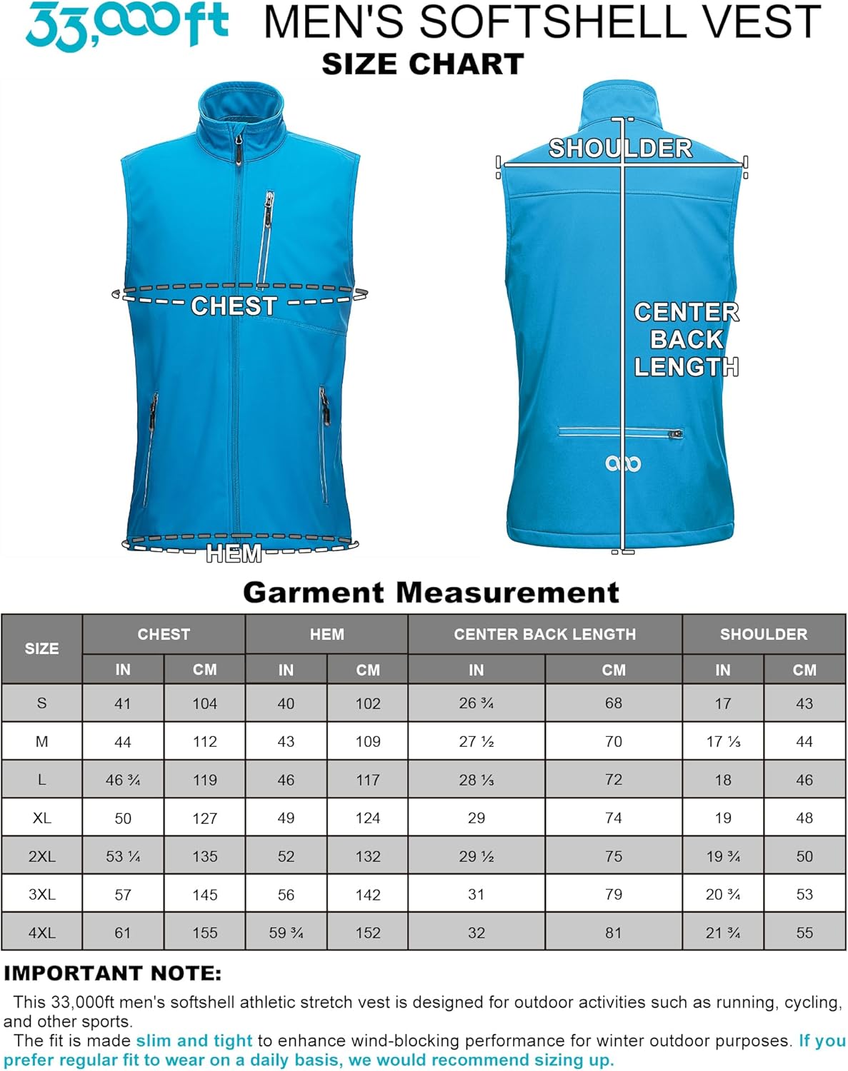 33,000ft Leichte Softshell Weste für Herren, Wasserdichte Winddichte Laufweste, Atmungsaktive Vest G
