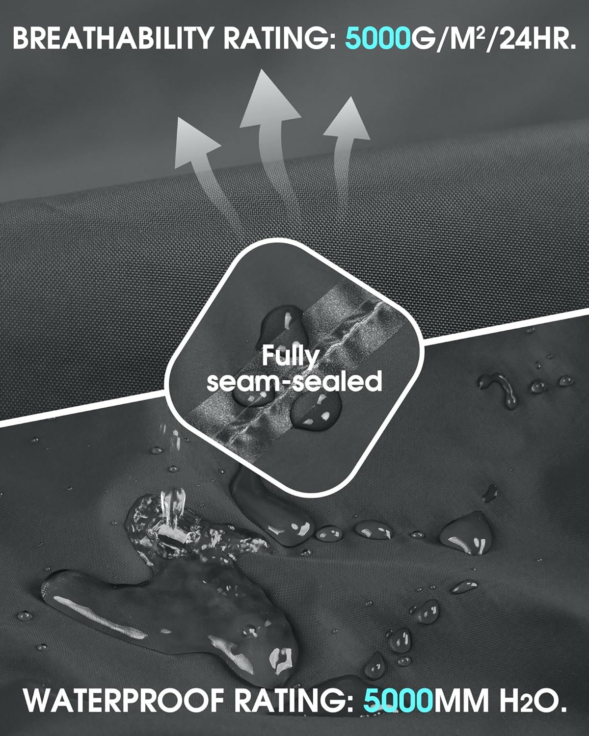 - WASSERDICHT & SCHNELLTROCKNEND -- Die 33,000ft Herren Regenhose ist nicht nur wasser- und winddicht, sondern auch Weich, Bequem, Fleckenresistent, Anti-Fading und Schnelltrocknend. WASSERDICHT : 5000MM H₂O , ATMUNGSAKTIV: 5000G/M²/24HR .