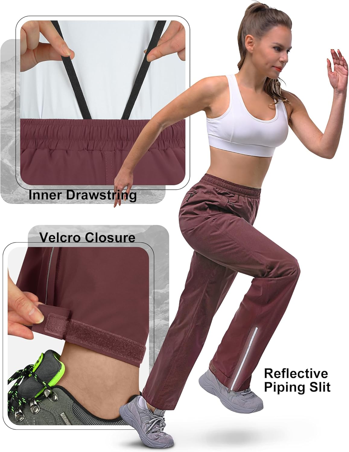 - Reflektierende Streifen -- Die Damen überziehhose ist mit reflektierenden Streifen an den Hosenbeinen ausgestattet, um Ihre Sichtbarkeit und Sicherheit bei schlechten Lichtverhältnissen zu verbessern. Damit sind Sie bei Outdoor-Aktivitäten wie Wandern