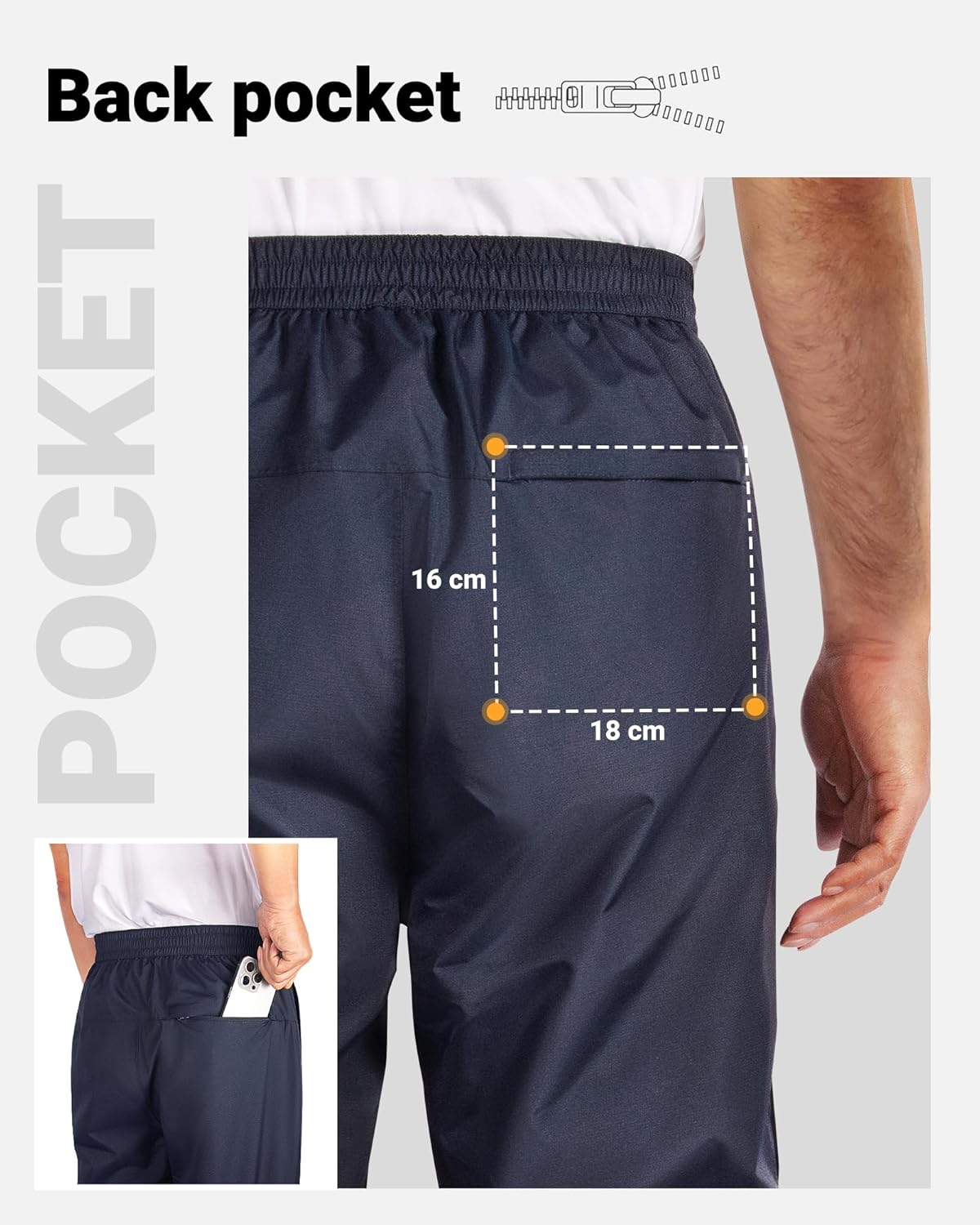 - SEITLICHE REISSVERBINDUNG -- Herren Regenhose mit seitlichem reissverschluss ist mit seitlichen Reissverschlüssen ausgestattet, die ein einfaches An- und Ausziehen ermöglichen, um Ihre verschiedenen Outdoor-Bedürfnisse zu erfüllen. Reflektierende
