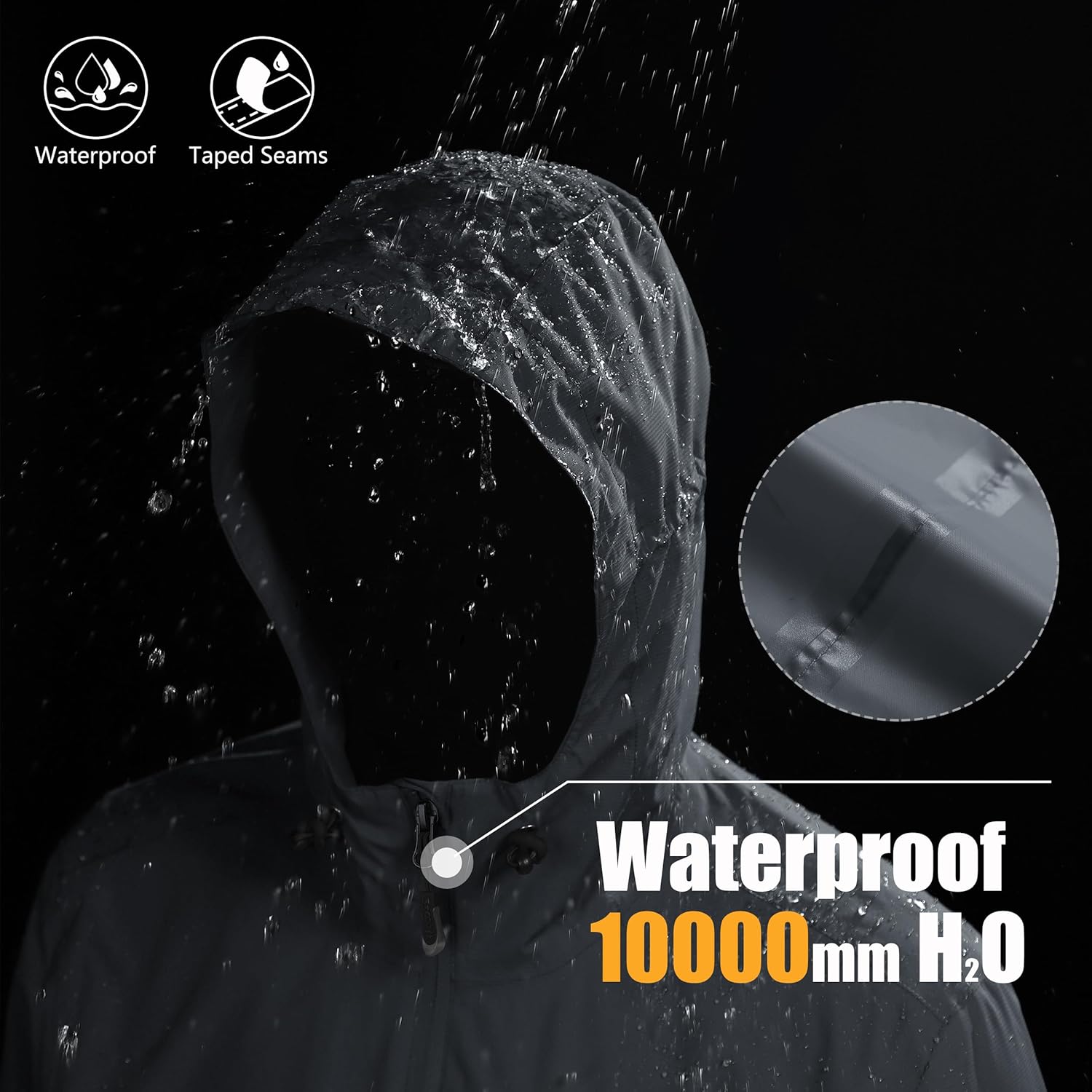 - 【Material】: 33,000ft regenjacken für herren. Die Aussenhülle besteht aus Ripstop-Polyestergewebe hoher Dichte. Die Nähte sind zu 100% vollständig versiegelt und mit einer TPU-Membran verschweisst. Die neue Version ist 10000 mmH₂O wasserdicht,