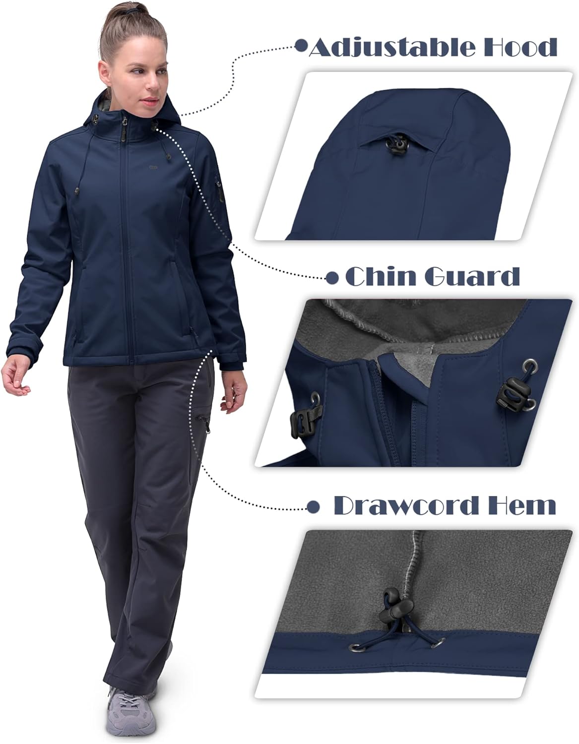 - 【Humanisiertes Design】--Diese Softshelljacke für Damen hat elastische und dehnbare Bündchen, eine verstellbare Kapuzenkordel und einen Saum, perfekt für Outdoor-Aktivitäten. Es bietet nicht nur viel Bewegungsfreiheit, sondern ermöglicht es Ihnen