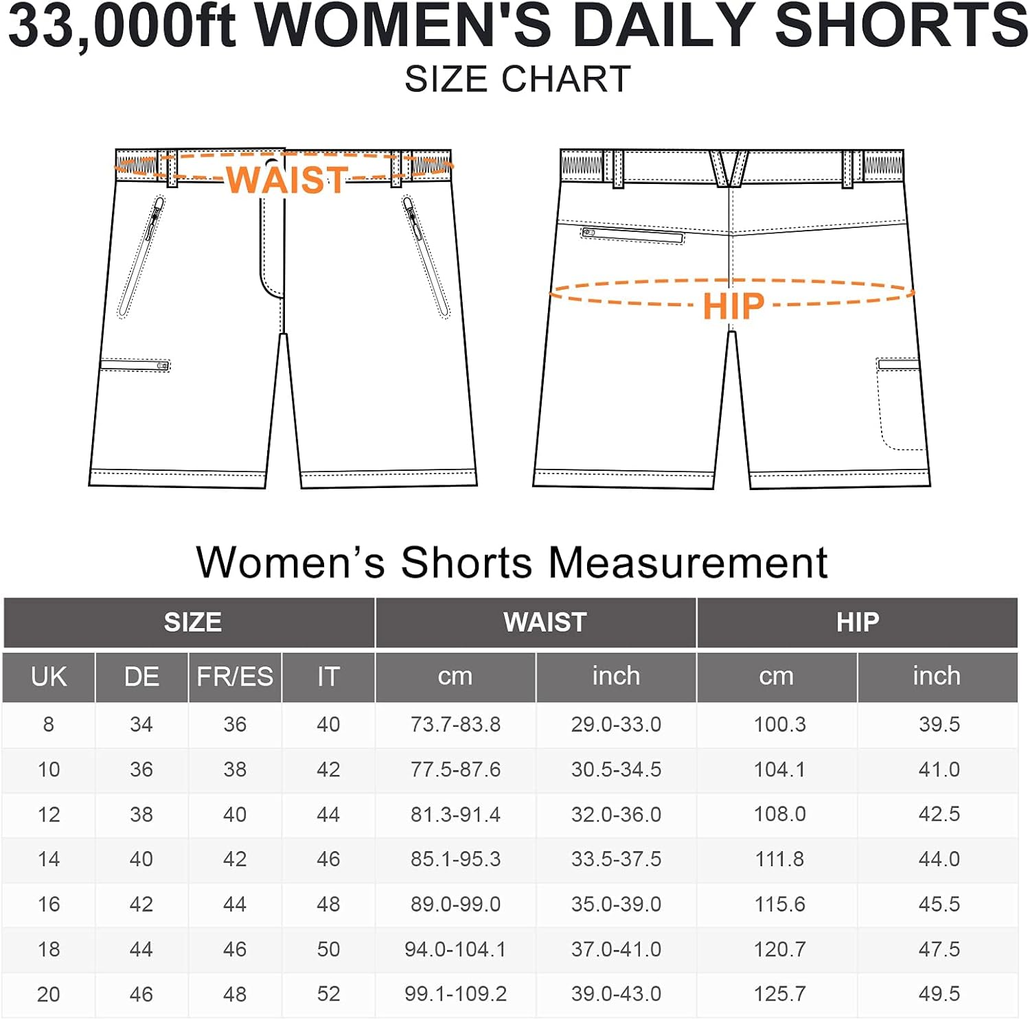 - 【4* Reissverschlusstasche】- Die 33,000ft Wandershorts damen kurz haben 2 Aussentaschen, 1 kleine Reissverschlusstaschen, in denen Ihr Telefon beim Laufen nicht wackelt, und 1 Reissverschlusstaschen hinten.