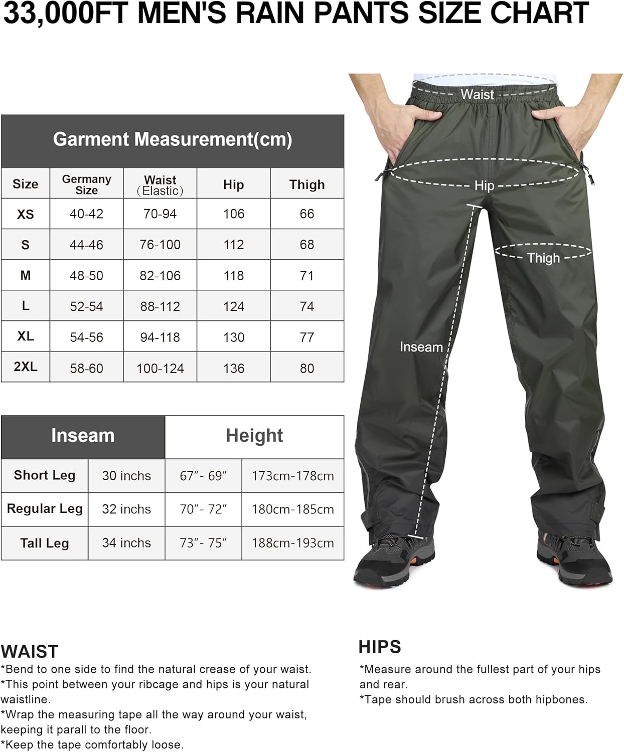 33,000ft wasserdichte Regenhose für Herren Leichte Regenhose Winddichte Outdoorhose zum Wandern Camp