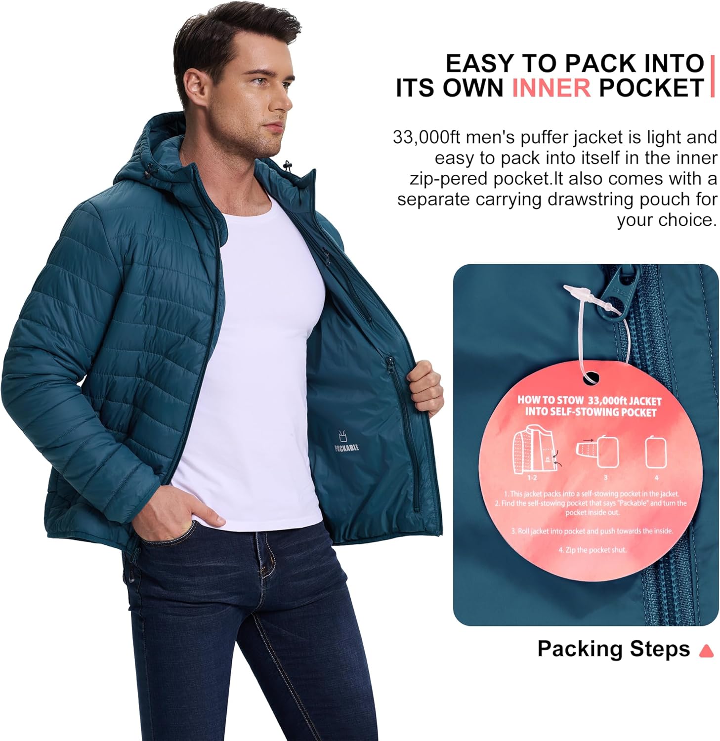 33,000ft Herren Leichte Steppjacke Outdoor Wasserbeständige Übergangsjacke Warme Winterjacke für Män