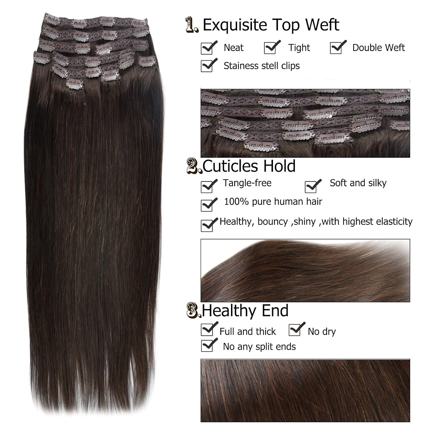 - Diese Echthaar Clip in Extensions ist extra dick und attraktiv. In 2 Minute geben sie Ihnen einen vollen und stilvollen Blick. Als Haarverdichtung ist es auch sehr gut.