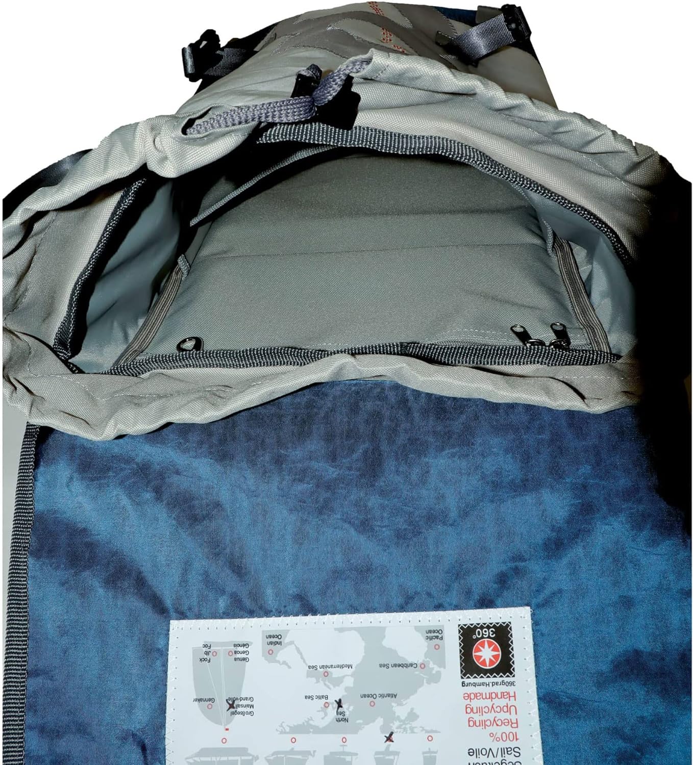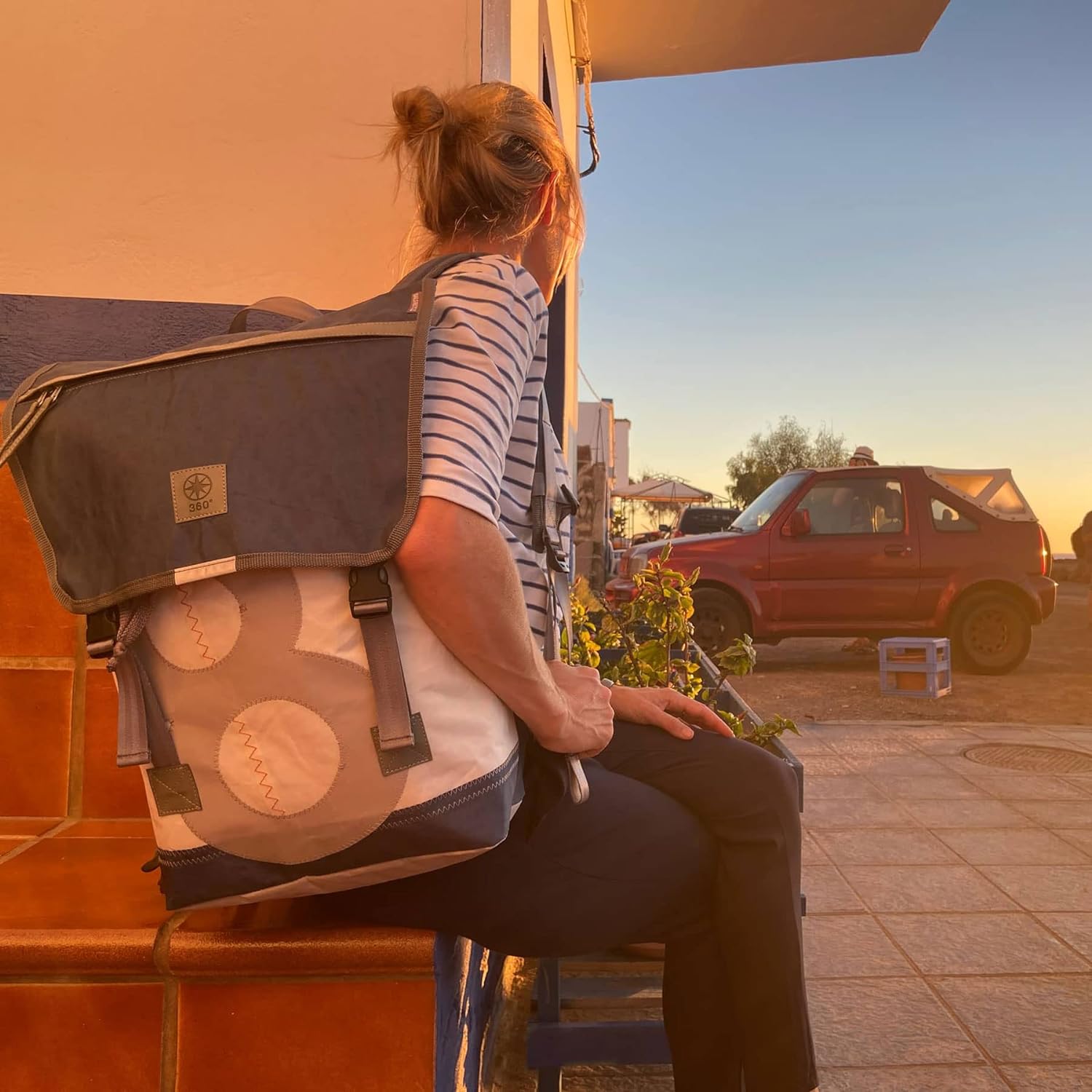 PRODUKTBESCHREIBUNGEN Für jeden Landgang unverzichtbar, ist der Reiserucksack von 360 Grad aus Segeltuch mehr als nur ein tragbarer Seesack. Schnittig modern und aus recyceltem Segeltuch genäht, bietet der 360° Rucksack echten Mehrwert. Im Aussehen erinnert dieser Designer-Rucksack an einen überdimensionierten Ranzen, doch das schlanke Schnittmuster bietet weitaus besseren Tragekomfort als herkömmliche Seesäcke. Im Volumen grosszügig angelegt, kann der Reiserucksack gut mit allem, was Dir wichtig ist, bestückt werden. Durch seine Aussenform lässt sich der Rucksack im Auto oder bei Bahnreisen gut verstauen. Für Fussmärsche oder auf ausgedehnten Wanderungen sind die gepolsterten Tragegurte individuell einstellbar und auch der Rucksack lässt sich leicht und lange tragen. Der Reiserucksack aus Segeltuch ist ein idealer Begleiter für alle, die Wert auf Stil legen und guten Geschmack beweisen wollen. Das Modell ist aus weissem Segeltuch, aber alternativ auch als brauner Rucksack erhältlich. Rucksäcke aus Segeltuch werden aus gebrauchen Materialien hergestellt. Jeder unserer Rucksäcke hat schon als Segel bewiesen, aus welchem Holz - sorry: Tuch er genäht ist. Robust, stabil, wasserabweisend und widerstandsfähig sind die typischen Attribute der Original 360° Segeltuchtaschen.