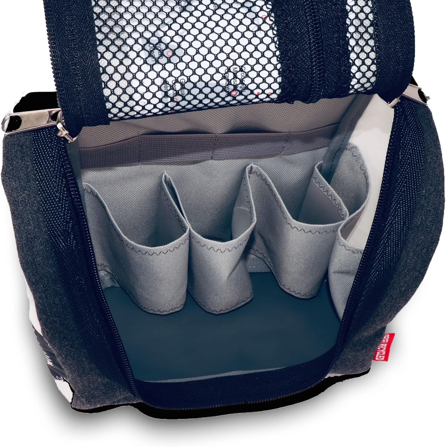 - Innenaufteilung 1 Hauptfach in der Mitte 5 Fächer aussen, kleines RV Fach in der Lasche