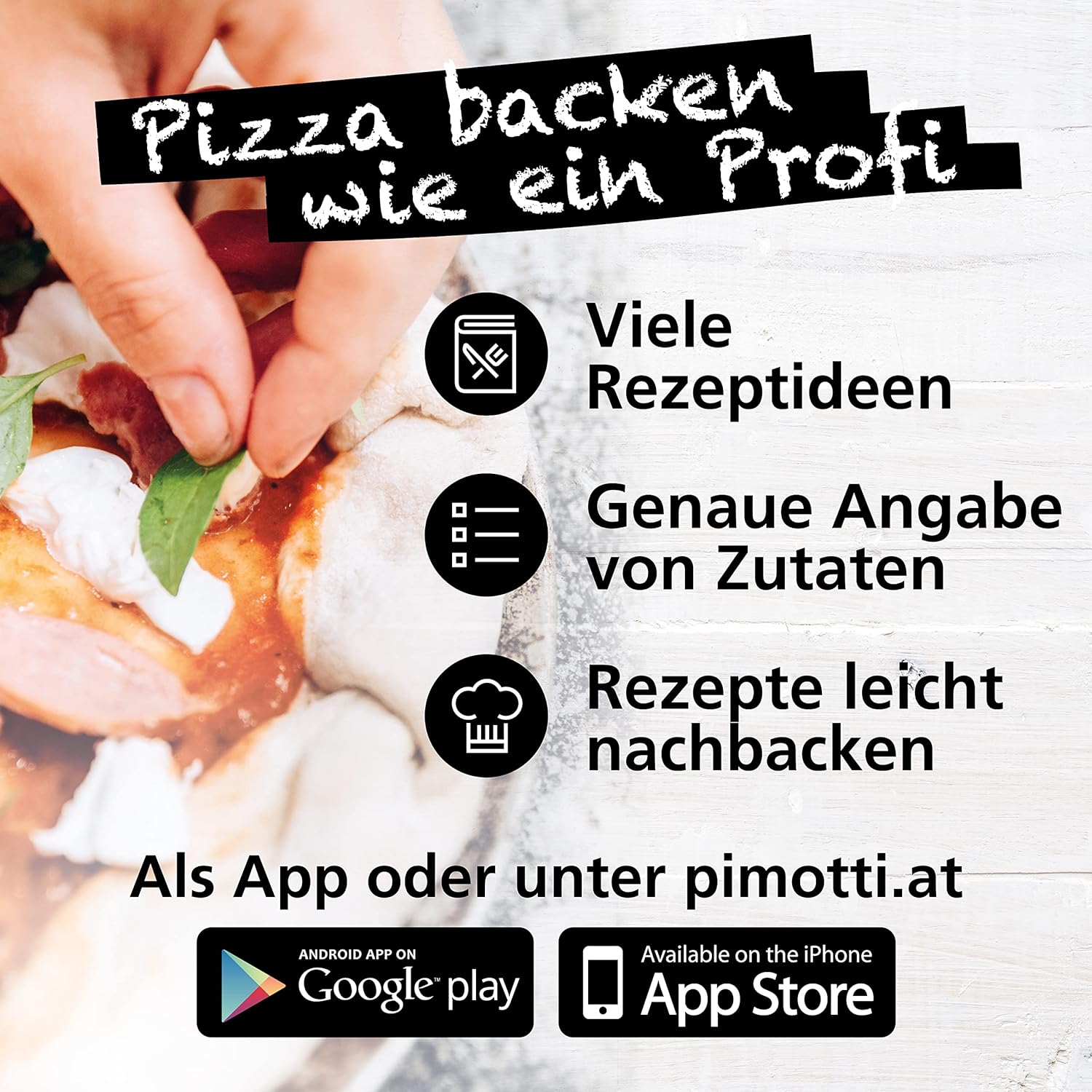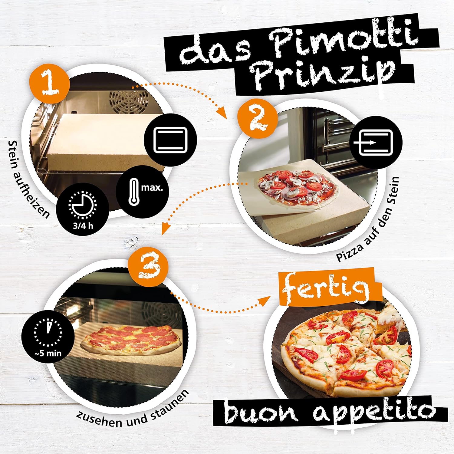- PIZZA AUS DEM STEINOFEN WIE BEIM ITALIENER: Das Geheimnis der perfekten italienischen Pizza ist gelüftet – Simuliere in deinem Backofen die Eigenschaften eines Steinofens und backe Pizzen, Flammkuchen, Brot wie die Profis - Verwandle mit dem Pimotti Pizzastein Set deinen Backofen in eine Pizzeria und geniesse mit einfachen Schritt für Schritt Rezepten, supereasy perfekte Pizzen, wie von deinem Lieblingsitaliener – knuspriger Boden, fluffiger Teig, perfekt gebackener Belag – BUON APPETITO!