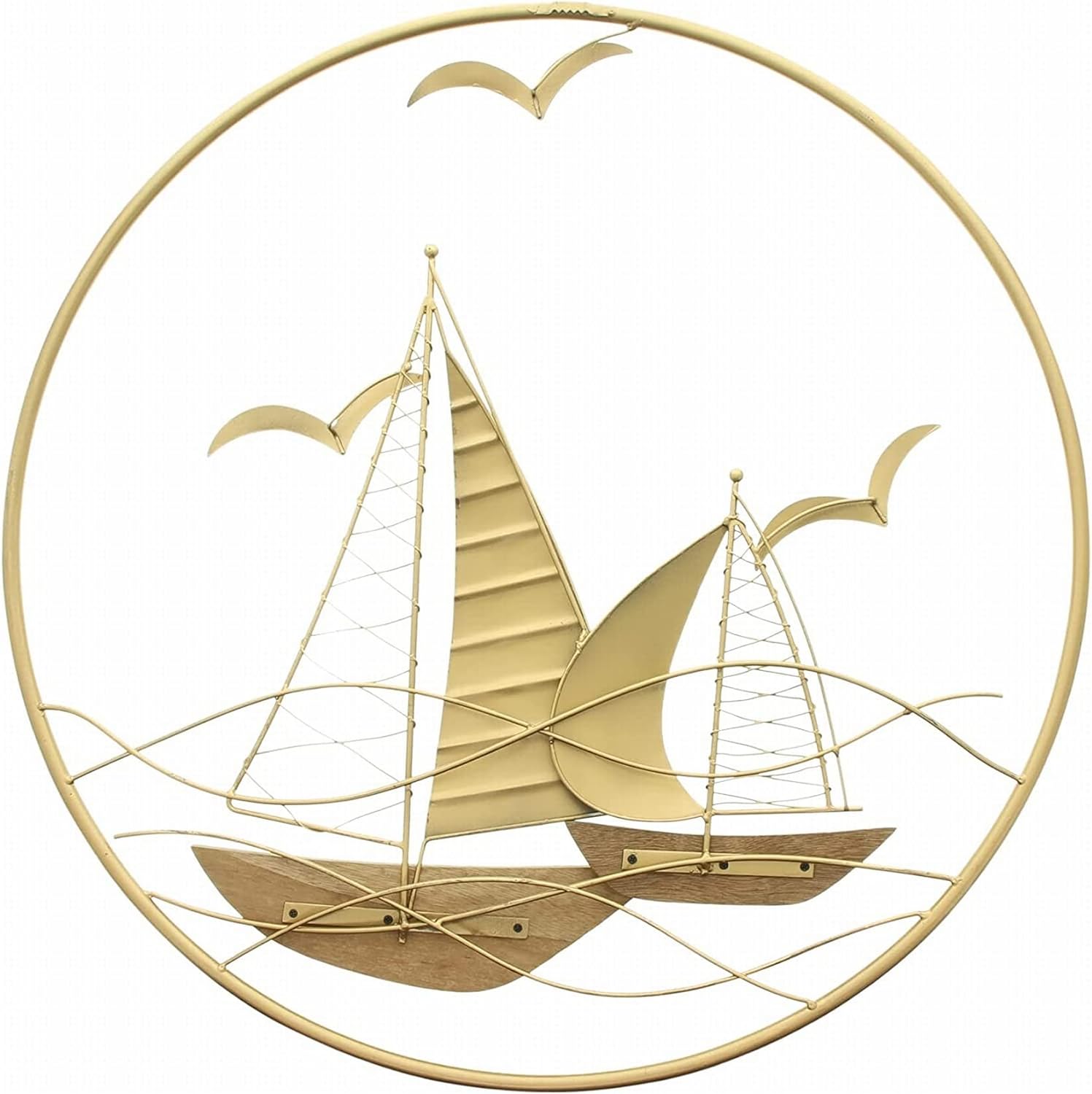 3D Wandbild "Regatta" aus Metall, golden, rund, Ø 56 cm, Wandschmuck, Wanddeko, Wandverzierung, Deko