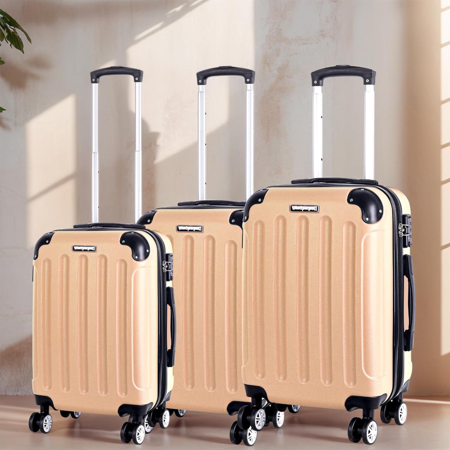 - 𝐇𝐨𝐜𝐡𝐰𝐞𝐫𝐭𝐢𝐠𝐞𝐬 𝐌𝐚𝐭𝐞𝐫𝐢𝐚𝐥: Das 3-teilige Kofferset ist aus robustem ABS-Material gefertigt, das eine langlebige und widerstandsfähige Struktur gewährleistet. Dies liefert ein optimales