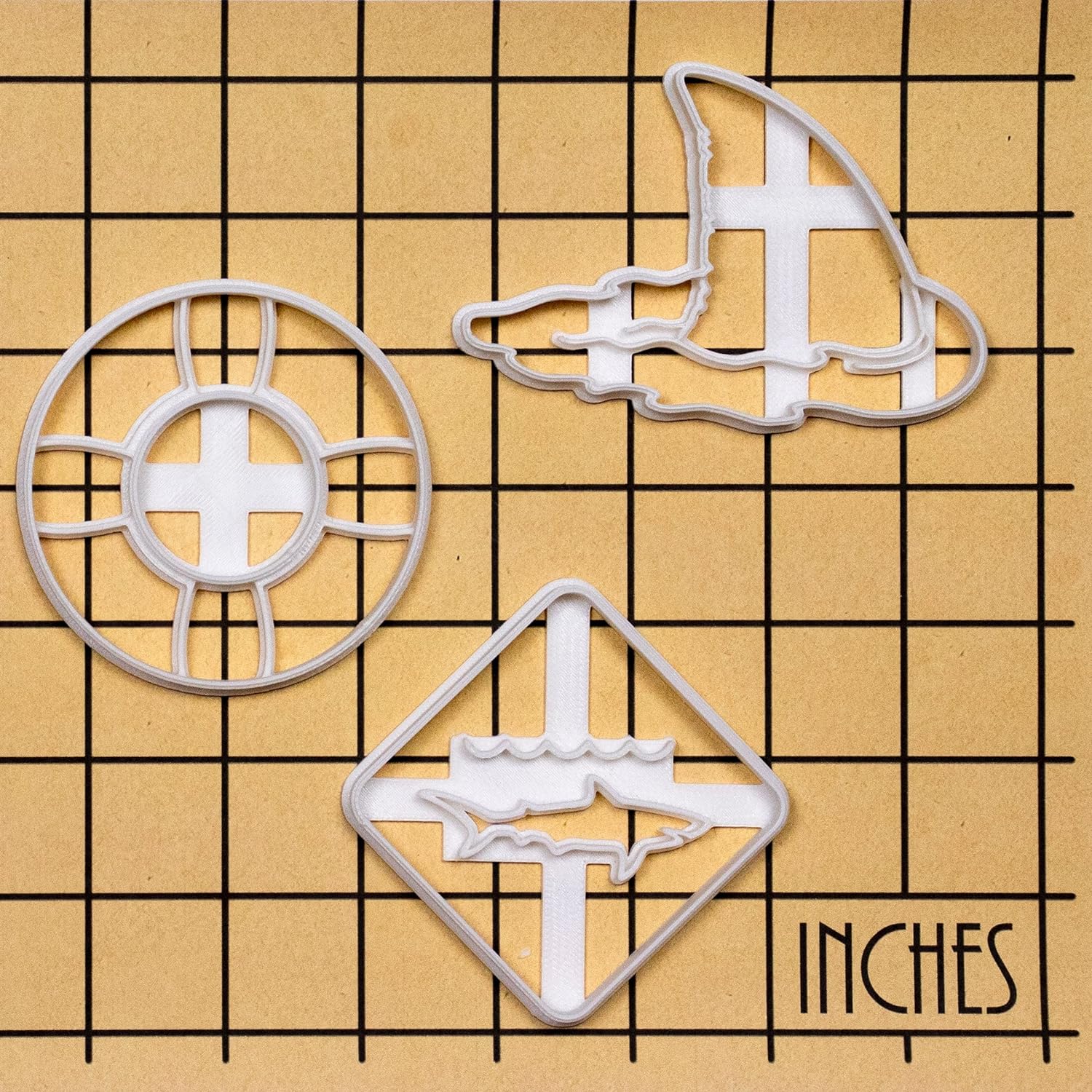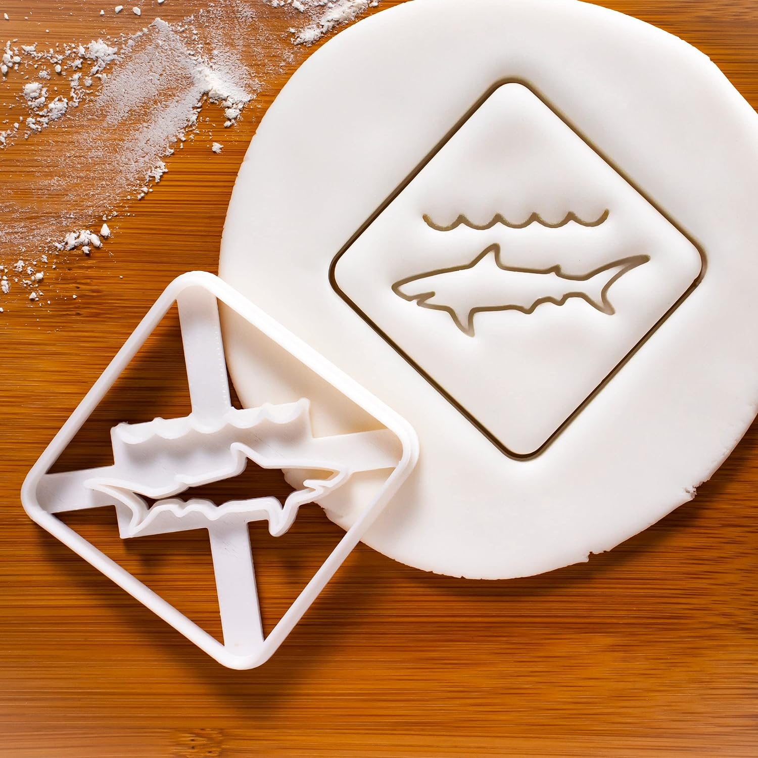 - Hai-Warnschild Ausstechform Grösse: 8.4 cm by 8.4 cm (3.3 Zoll by 3.3 Zoll)