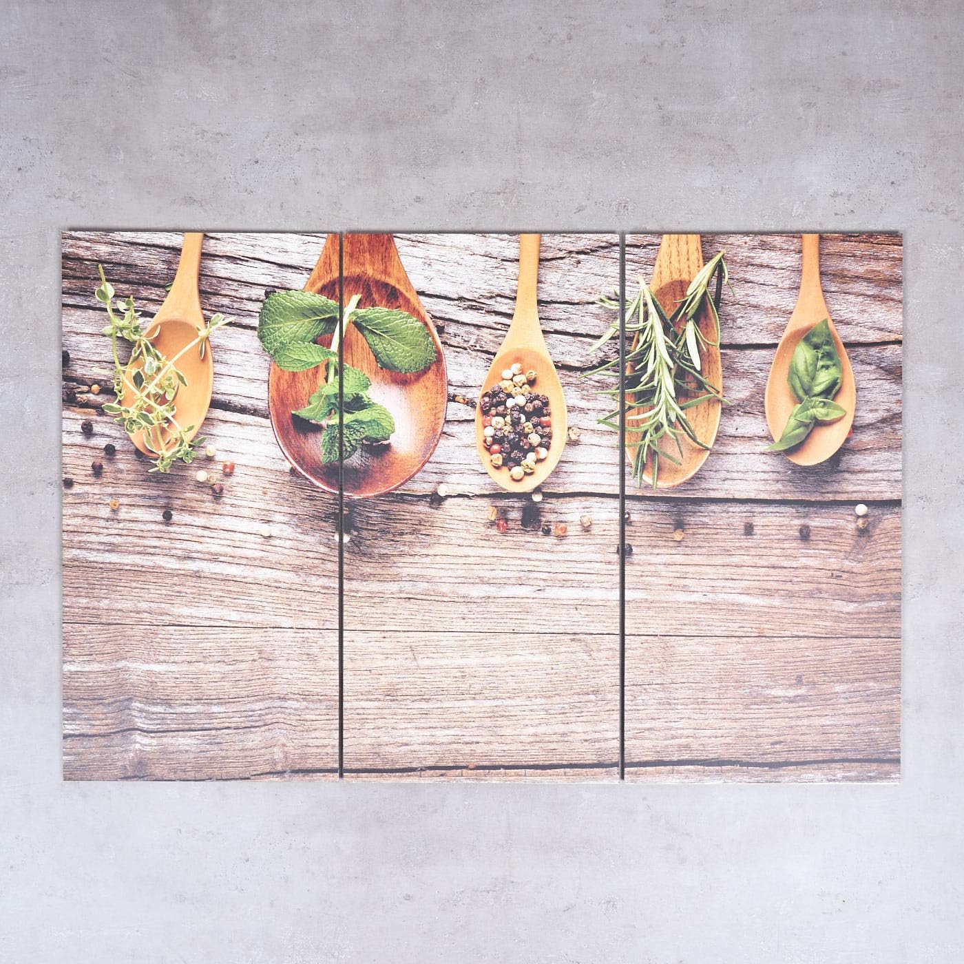3er Set Wandbild 90x60cm Aluminium Dibond Gewürze Kräuter Löffel Küche Deko Wanddekoration Aluschild