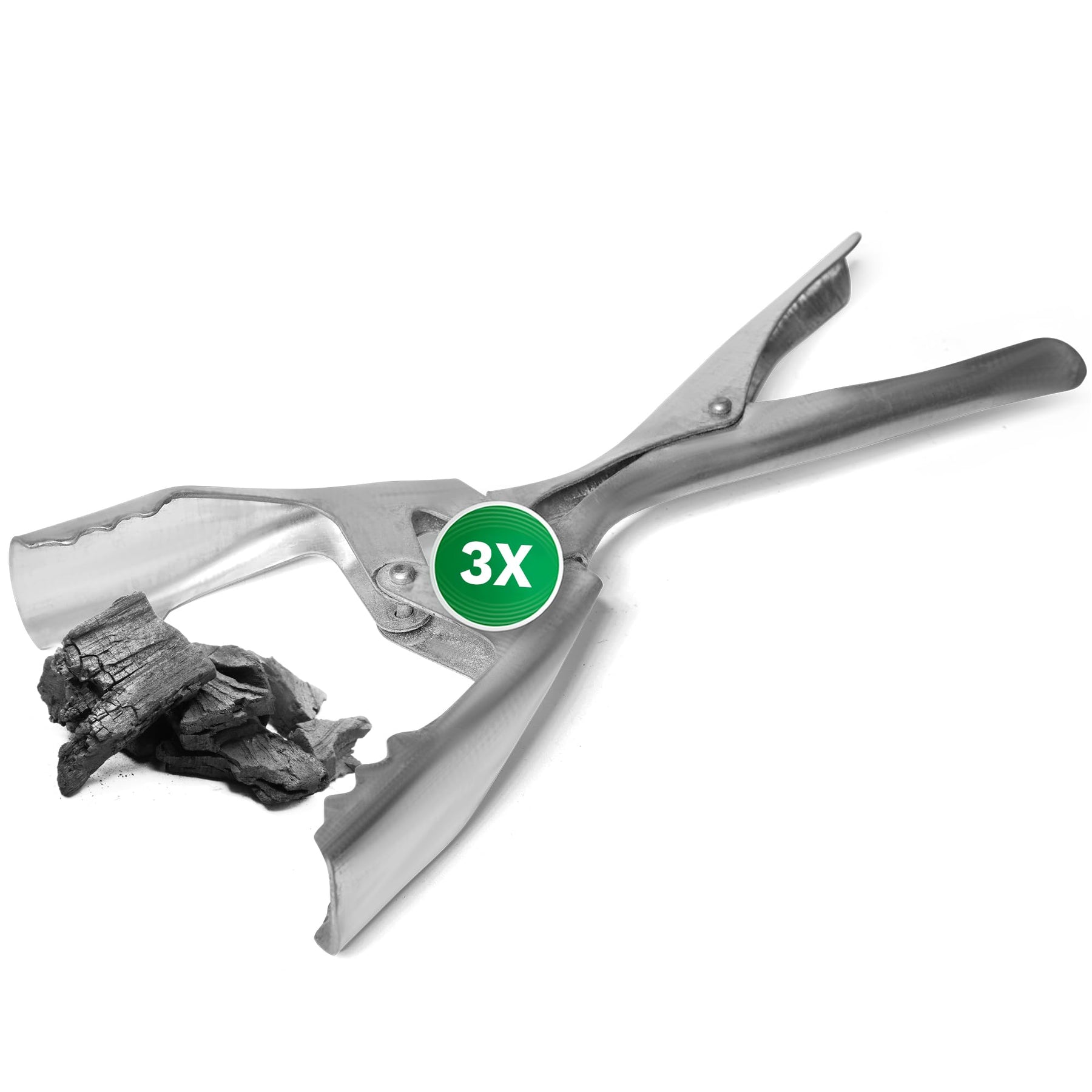 3x Brikettzange verzinkt mit Doppelgelenk Kohlezange für Briketts Kohle Kaminzange Ofenzange Kaminzu