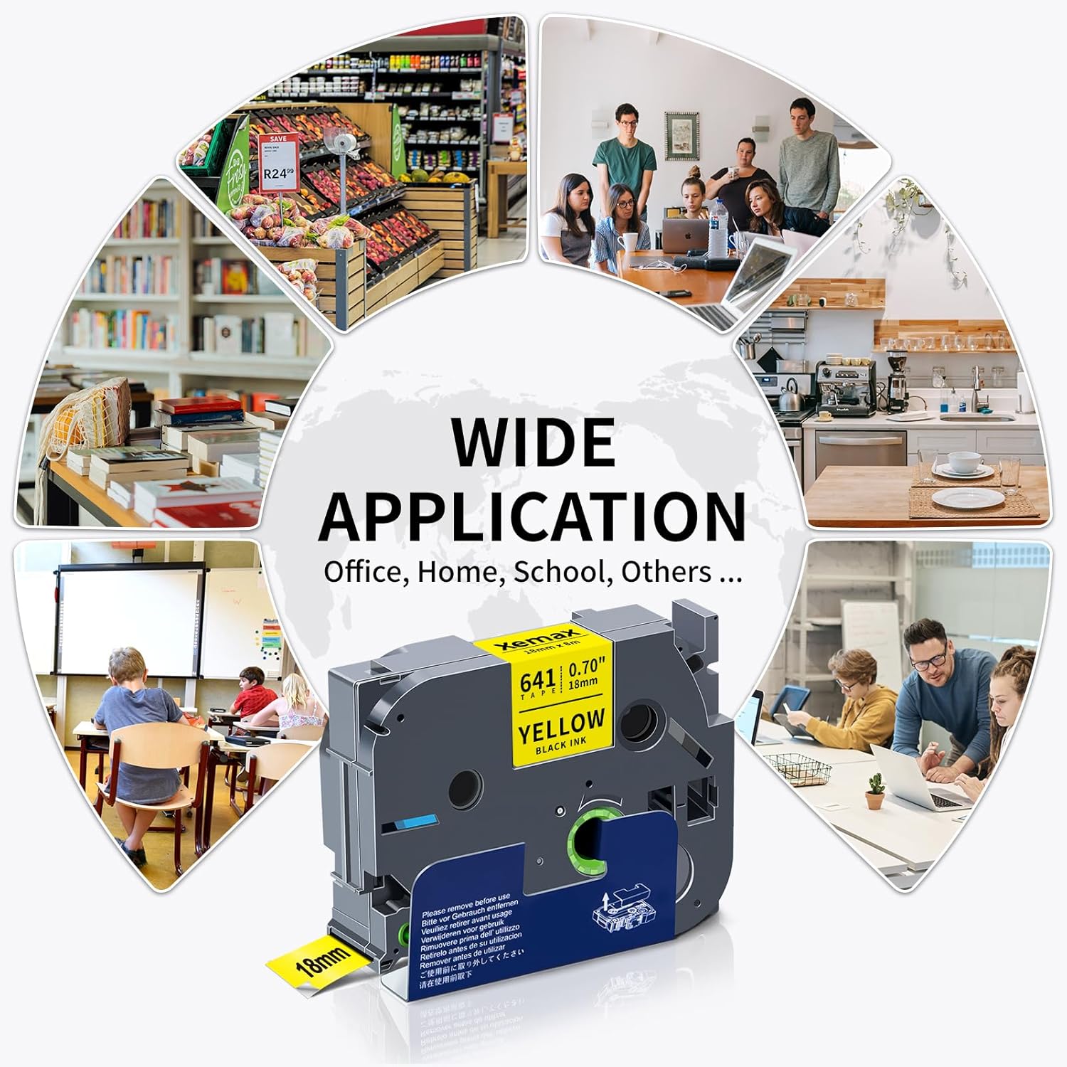- Paket: 3 Stück Kompatibel Etikettenband für Brother P-Touch Bänder TZe-641 TZe641 TZ-641 TZc-641 AZe-641 TZe brother 18mm 0,7'' Beschriftungsband. Material: Glänzend laminiert. Farbe: Schwarz auf gelb. Breite: 18 mm (0,7''); Länge: 8 m (26,2')