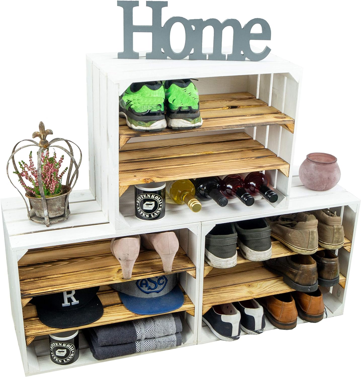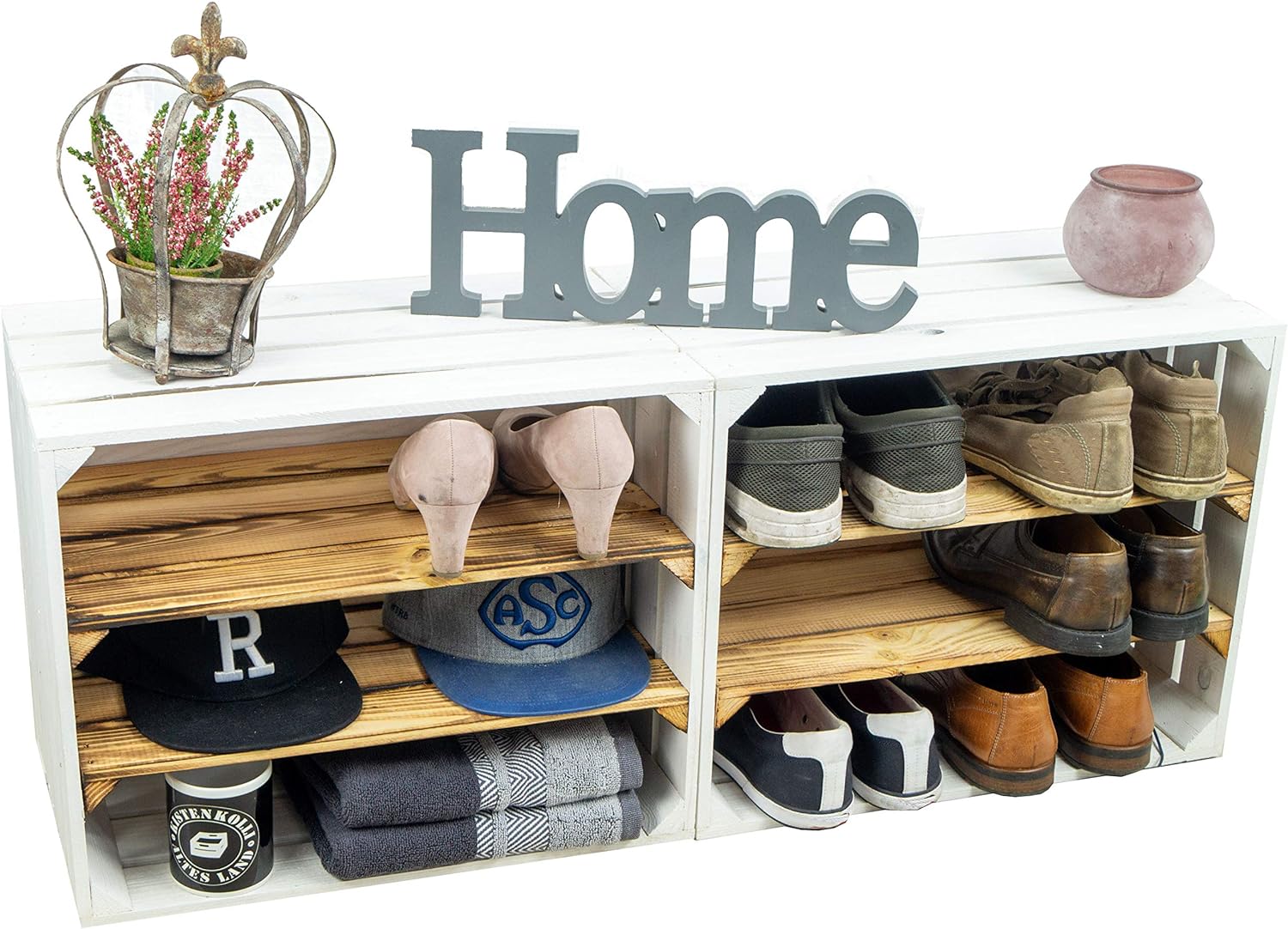 - ✔Ideal als Schuhregal! Die Holzkiste-n können dank der Unterteilung perfekt als schmaler Schuhschrank verwendet werden. Aber auch als TV Tisch, oder als Ordnungsystem zur Aufbewahrung.