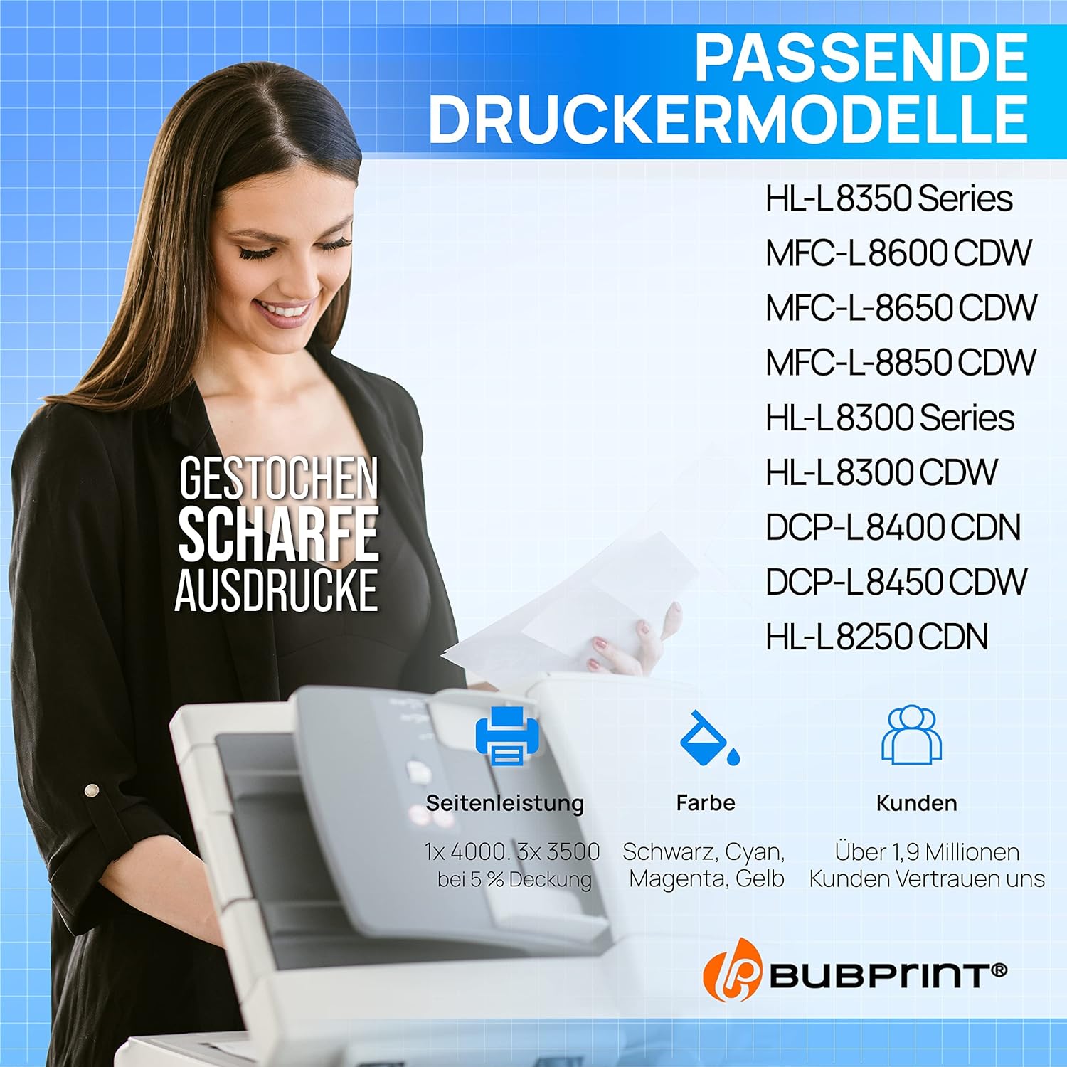 - Druckerpatronen für passende Drucker: DCP-L 8400 CDN / DCPL8450-CDW / HL-L8250 CDN / HL-L8300 / HLL8350-CDW / HL-L8350CDWT / HL-L8350 / MFC-L8600CDW / MFCL8650-CDW / MFC-L8850 CDW