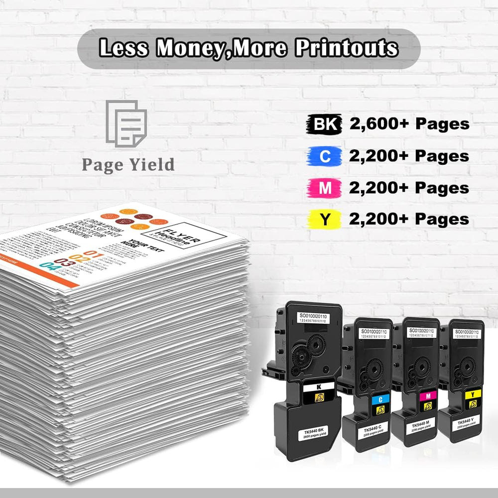 - 2. 【Seitenleistung】 2600 Seiten für Schwarz und 2200 Seiten für Cyan, Magenta, Gelb bei 5 % Deckung, A4-Papier, Letter. (ISO/IEC-Norm). Kompatibel mit Teilenummern: TK-5440 Schwarz: TK-5440K, Cyan: TK-5440C, Magenta: TK-5440M, Gelb TK-5440Y.