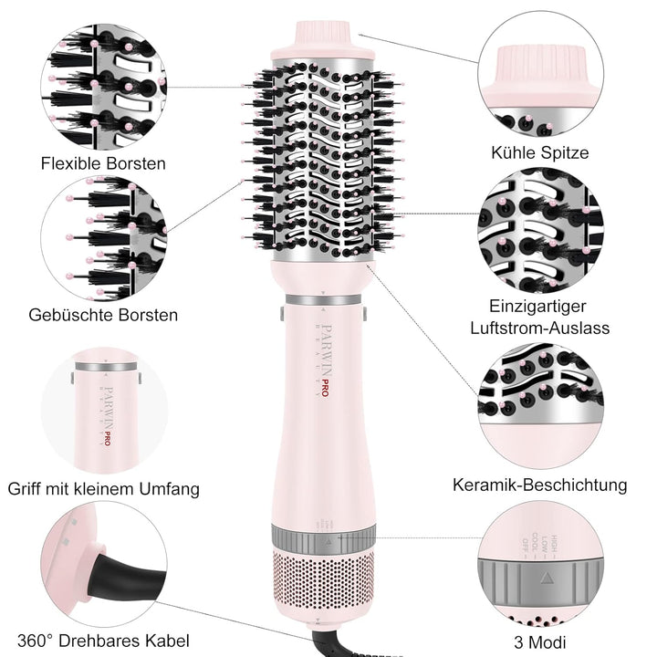 - 4 IN 1 STYLER SET --- Die 4 in 1 Föhnbürste ist eine multifunktionale Haartrocknerbürste, die vier unterschiedlich grosse Bürstenköpfe hat, um Ihren Stylingbedürfnissen gerecht zu werden. Sie fungiert als Föhn, Volumengeber, Stylingbürste und