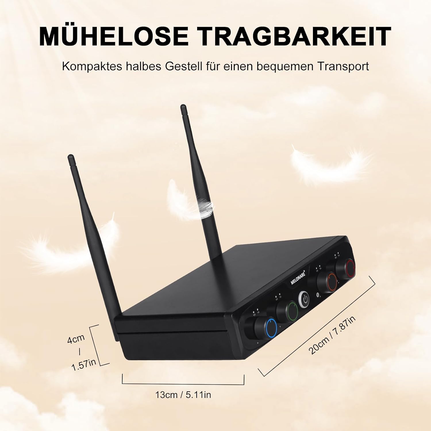 - EINFACHE TRAGBARKEIT: Unser kompaktes schnurloses Mikrofon-Set in der Mitte des Racks wurde entwickelt, um leicht zu transportieren und einfach einzurichten und die Audioverteilung in jeder Umgebung zu verbessern: ideal für HeimkTV, Partys, DJ-Events,