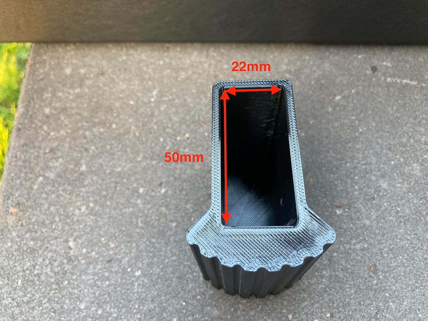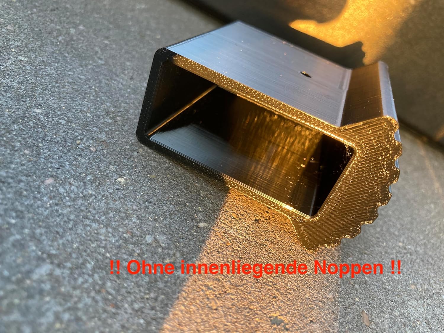- **Wichtige Hinweise:** Bitte messen Sie vor der Bestellung die Aussenmasse Ihrer Leitertraverse oder Holme und stellen Sie sicher, dass die Abmasse für diesen Traversenfuss mit einem Innenmass von 50x22mm passen. Es wird empfohlen immer alle