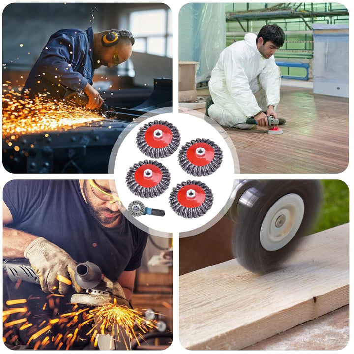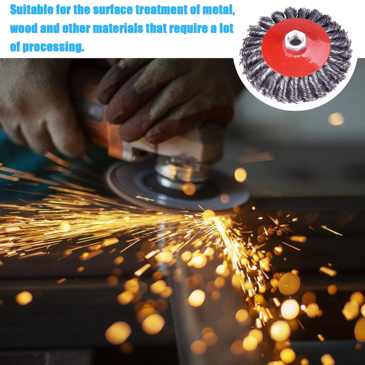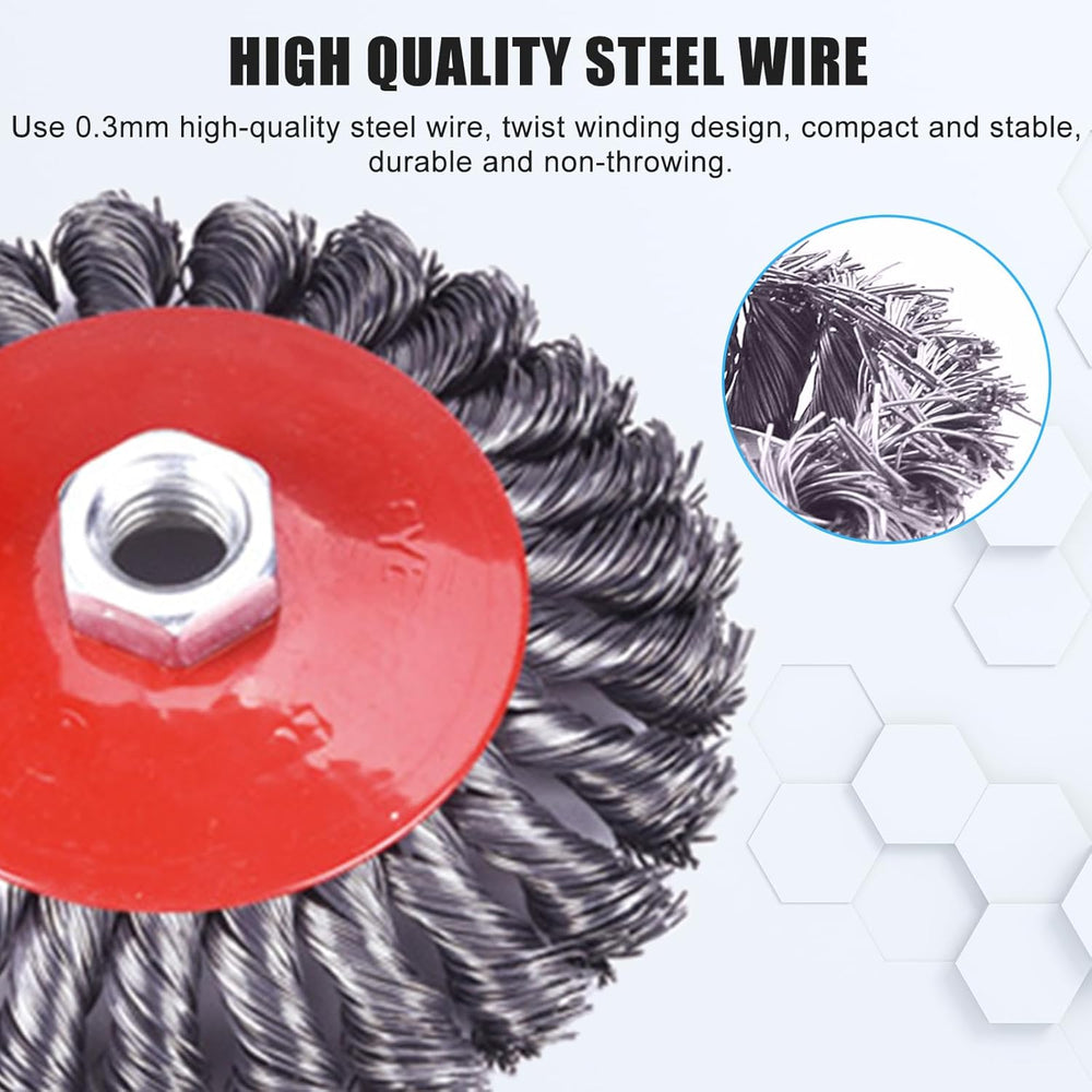 - 【Bestens Gerüstet】Das Drahtbürste Set beträgt 4 Kegelbürsten( Ø 125 mm),Jeder besteht aus Kohlenstoffstahldraht. Geeignet für Winkelschleifer mit M14 Aufnahme.