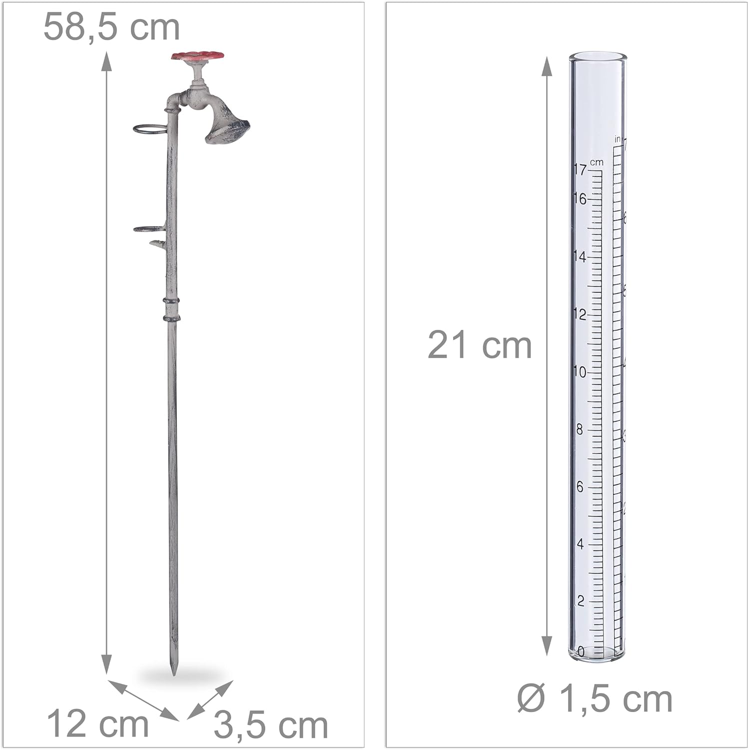 4 x Regenmesser Wasserhahn, mit Erdspiess, rustikal, Deko Niederschlagsmesser 17 cm / 7 inch, aus Gl