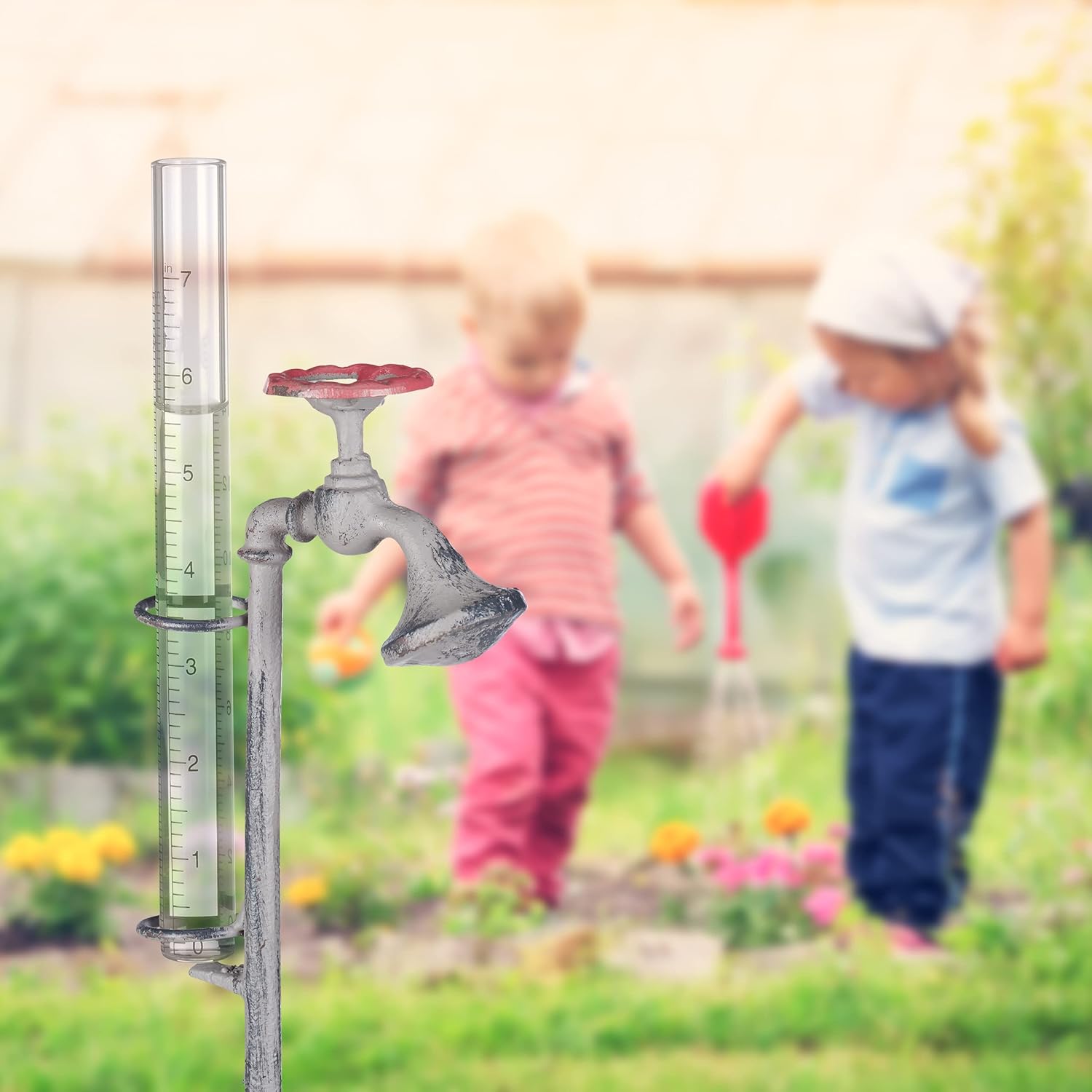 • Retro-Look: Regenmesser im nostalgischen Wasserhahn Design - Vintage Gartenstecker mit Rost-Optik