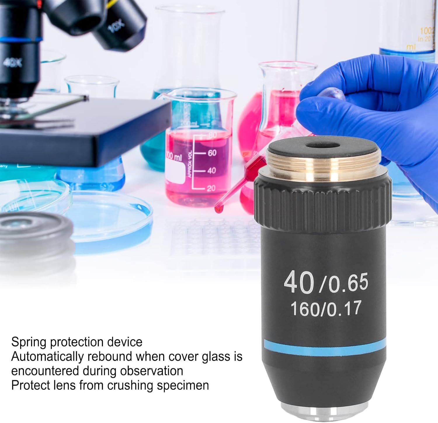 - AUTOMATISCHES REBOUND-DESIGN: Die Federschutzvorrichtung federt automatisch zurück, wenn sie während des Beobachtungsprozesses auf das Deckglas trifft, um das Objektiv vor dem Zerquetschen der Probe zu schützen