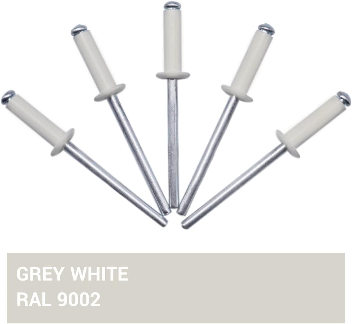 - ✔️ Verpackung: 400 Stück Blindnieten Grösse: 4,0 x 14 mm Aluminiumkörper und Stahldorn DIN 7337 Norm Farbe: grau-weiss (RAL 9002)