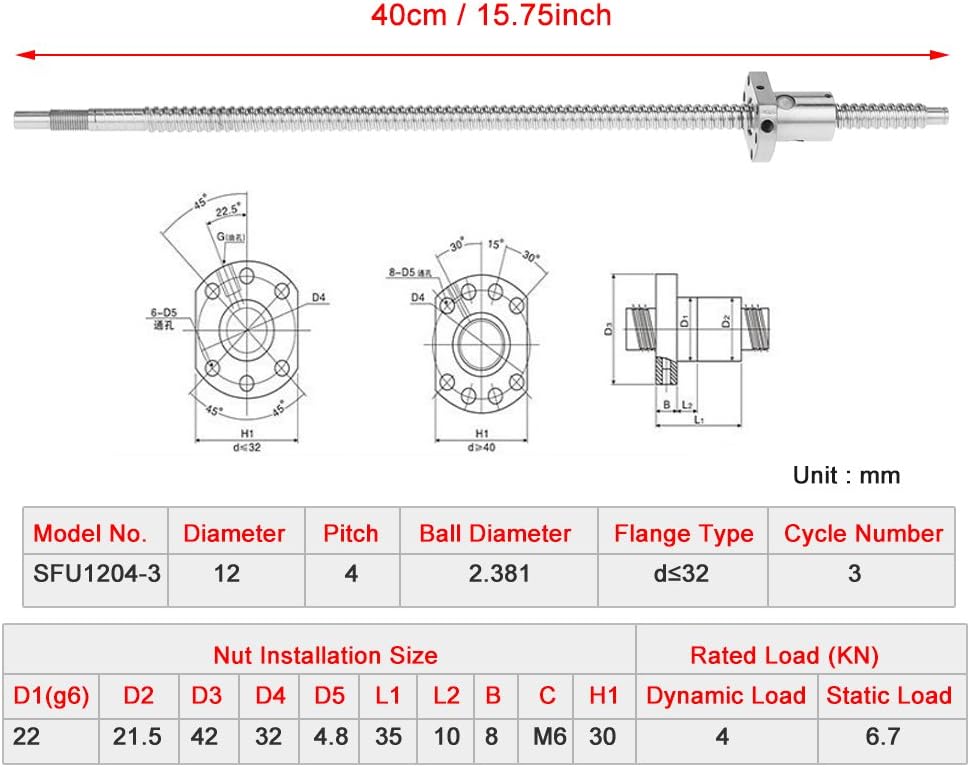- HOHE ÜBERTRAGUNGSEFFIZIENZ: 400 mm Kugelgewindetrieb hat keinen Stick-Slip-Effekt, erzeugt weniger Wärme und benötigt weniger Antriebsleistung. Der Reibungsverlust ist gering und die Übertragungseffizienz hoch.