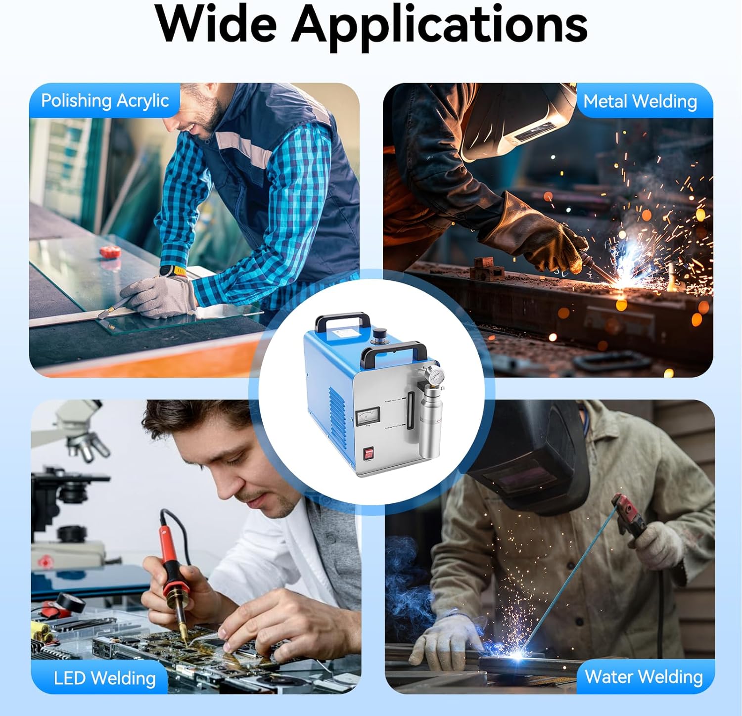 - ✎ Umweltschutz: Wasserstoff- und Sauerstoffflamme ist kohlenstofffreie Flamme, Werkstückschweissen fixiert ohne Kohlenstoffsprödigkeit.