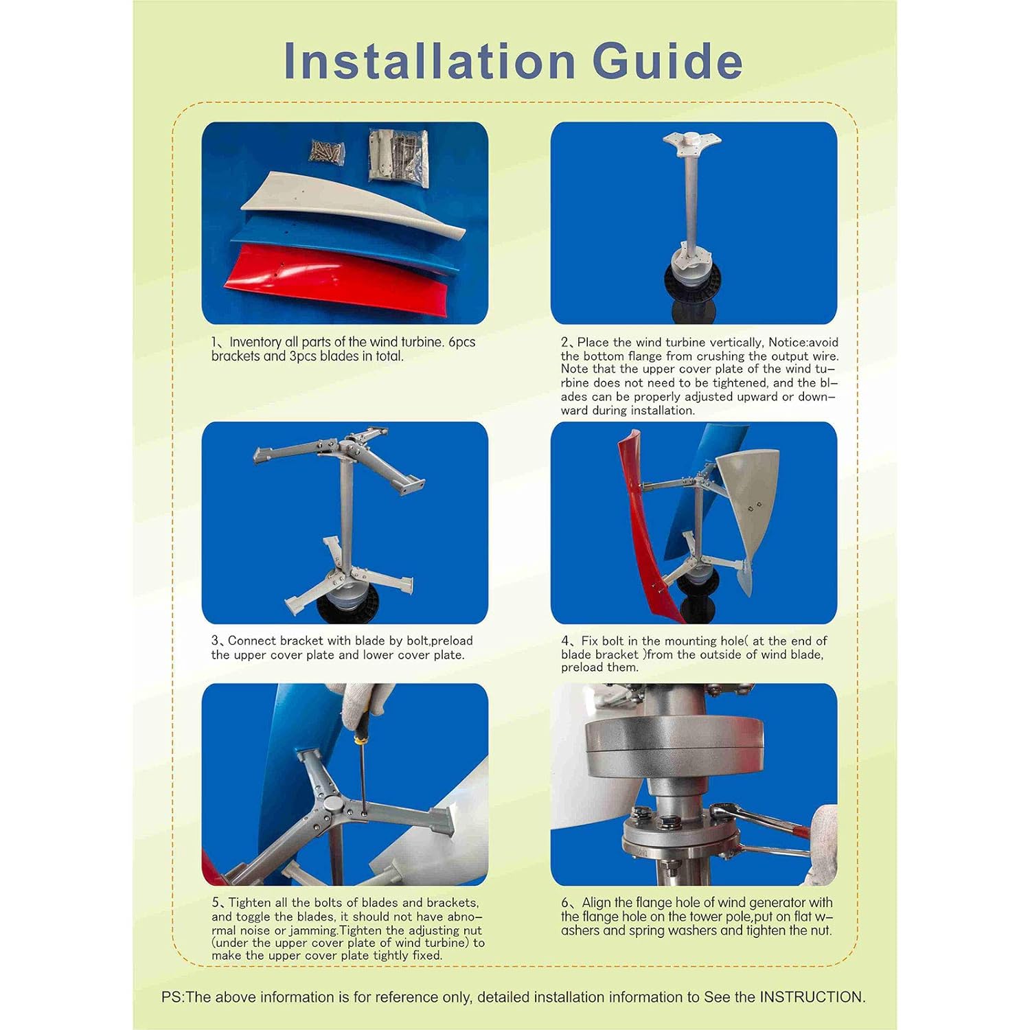 • ★Einfach zu installieren: Alles, was Sie für die Installation benötigen, ist im Lieferumfang enthalten. Die Windturbine mit einem benutzerfreundlichen und praktischen Flanschdesign ist einfach zu installieren